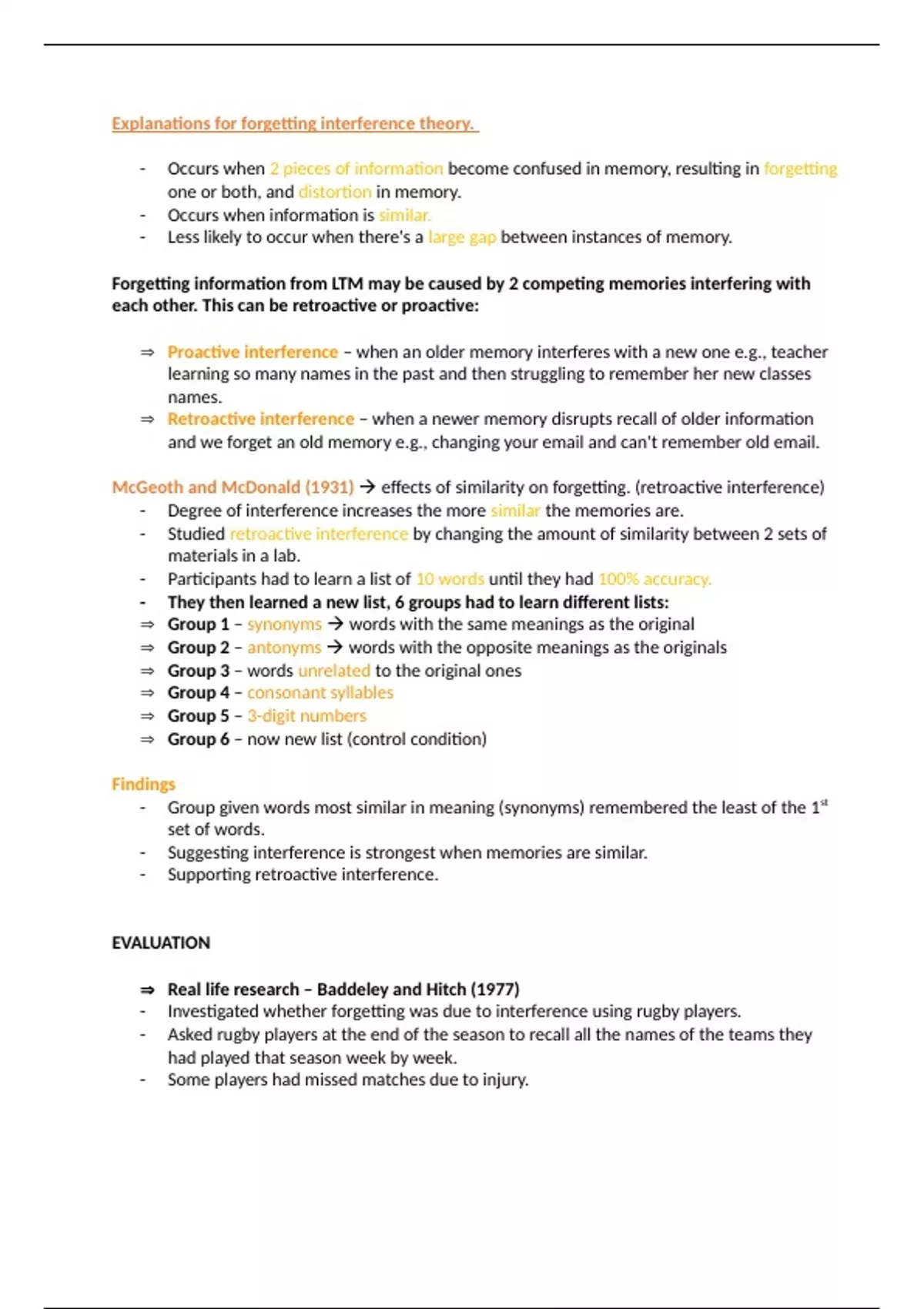 explanations for forgetting interference theory in topic of memory aqa a level psychology