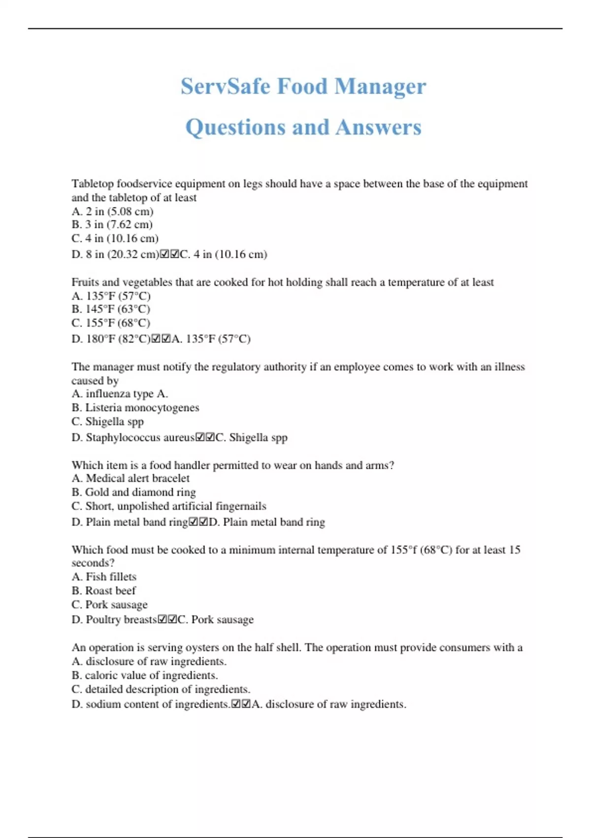 D. 165°F (74°C).☑️☑️A. 110°F (43°C).