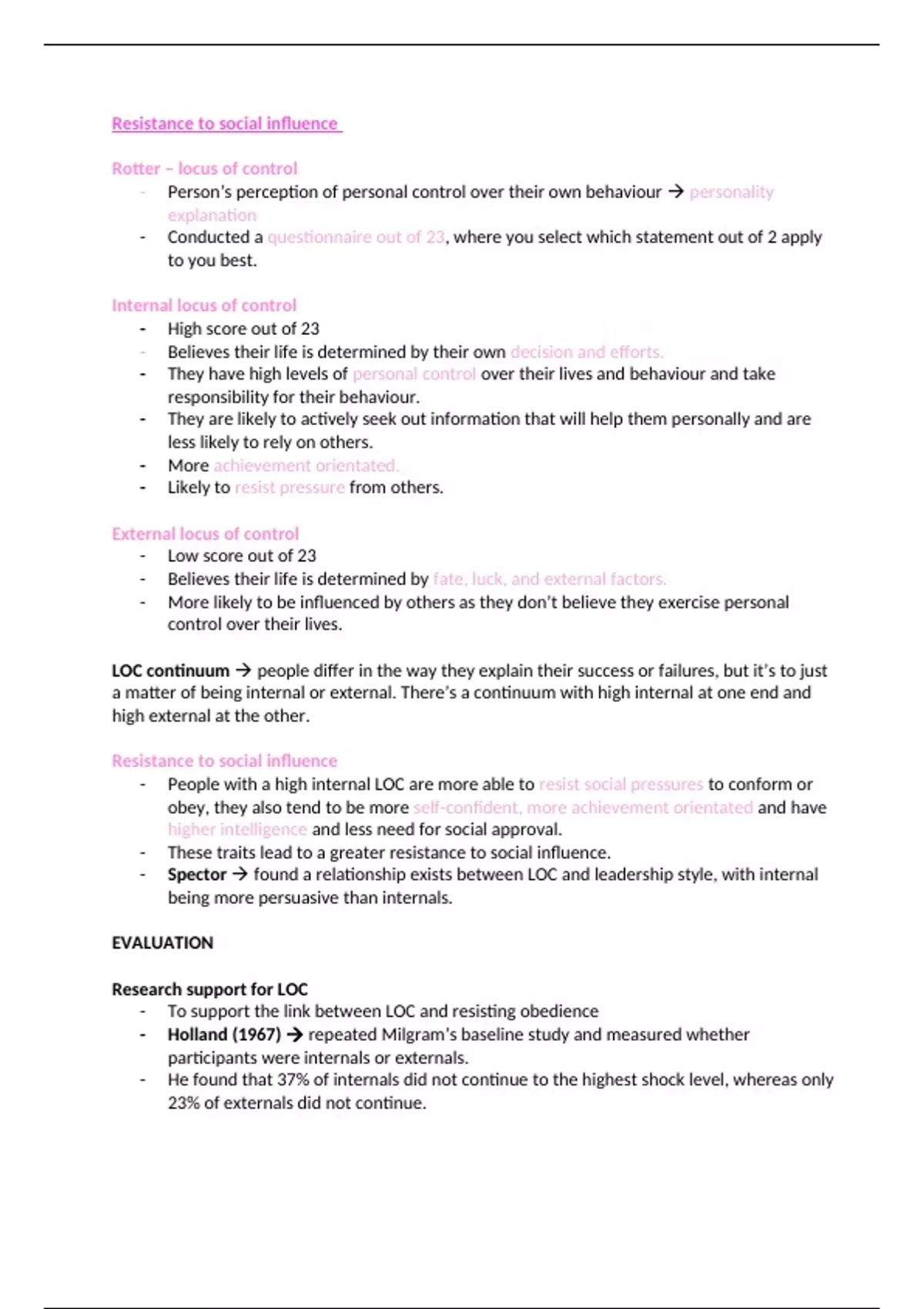 - People with a high internal LOC are more able to resist social pressures to conform or