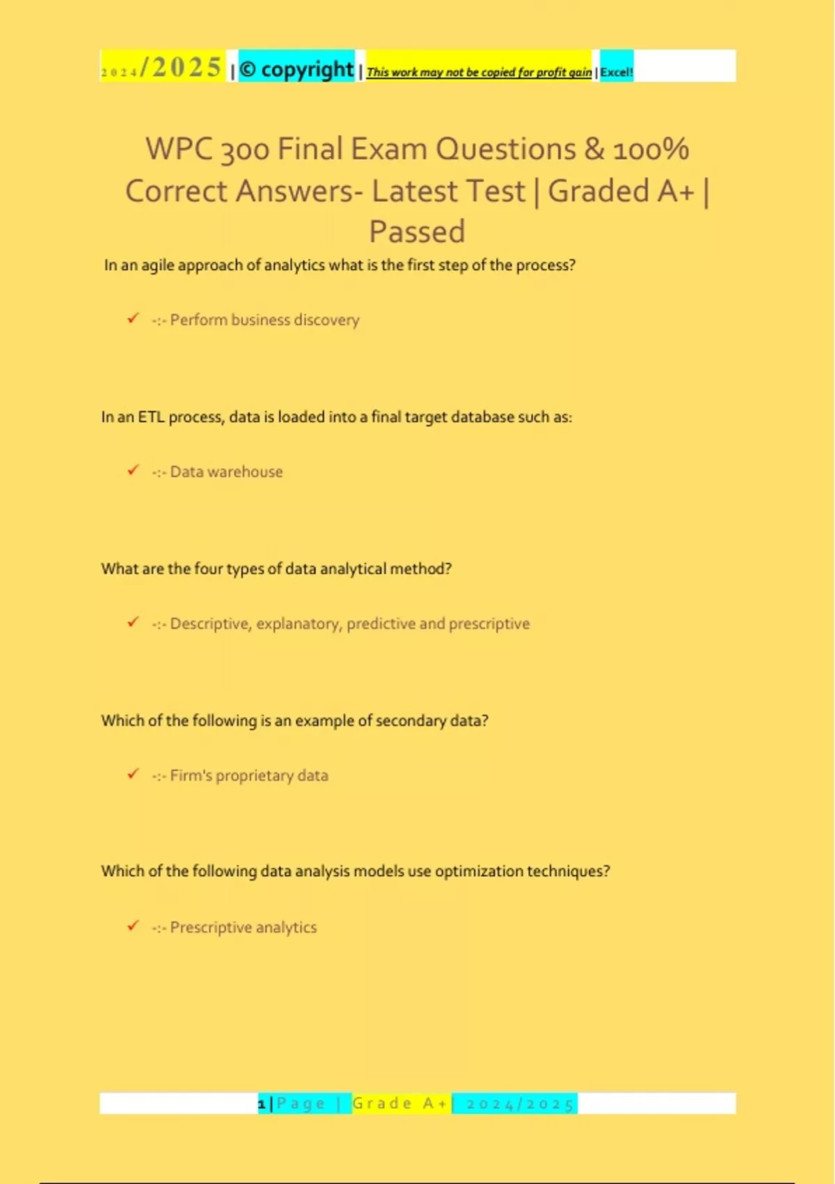 WPC 300 Final Exam Questions & 100% Correct Answers- Latest Test | Graded A+ | Passed