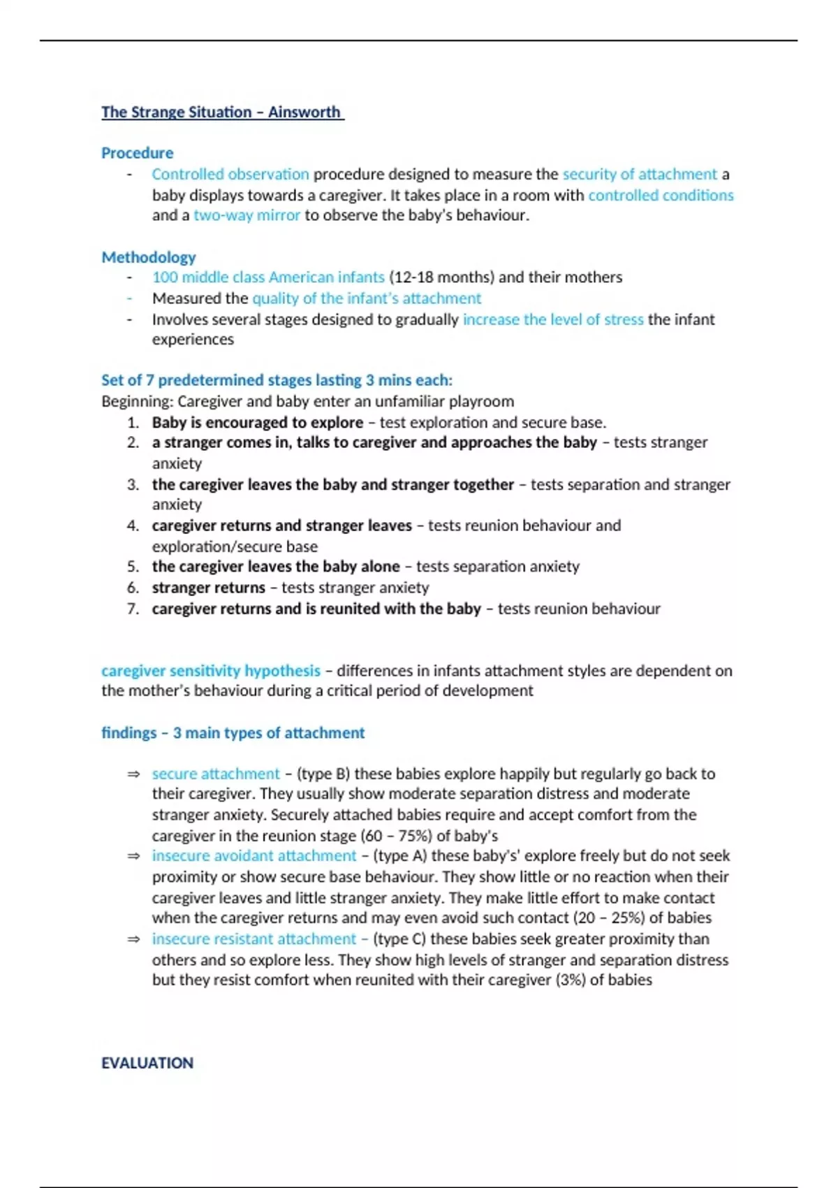 3. the caregiver leaves the baby and stranger together – tests separation and stranger