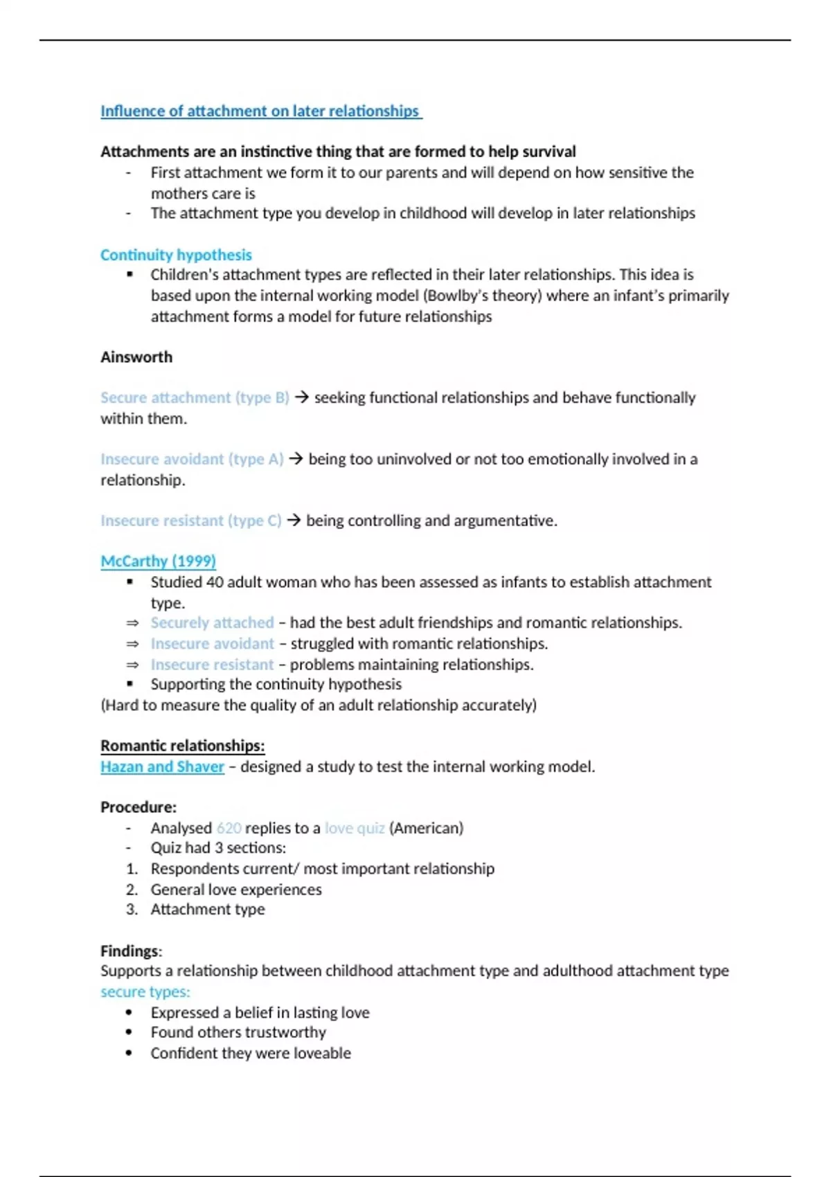notes on the influence of attachment on later relationships for aqa a level psych