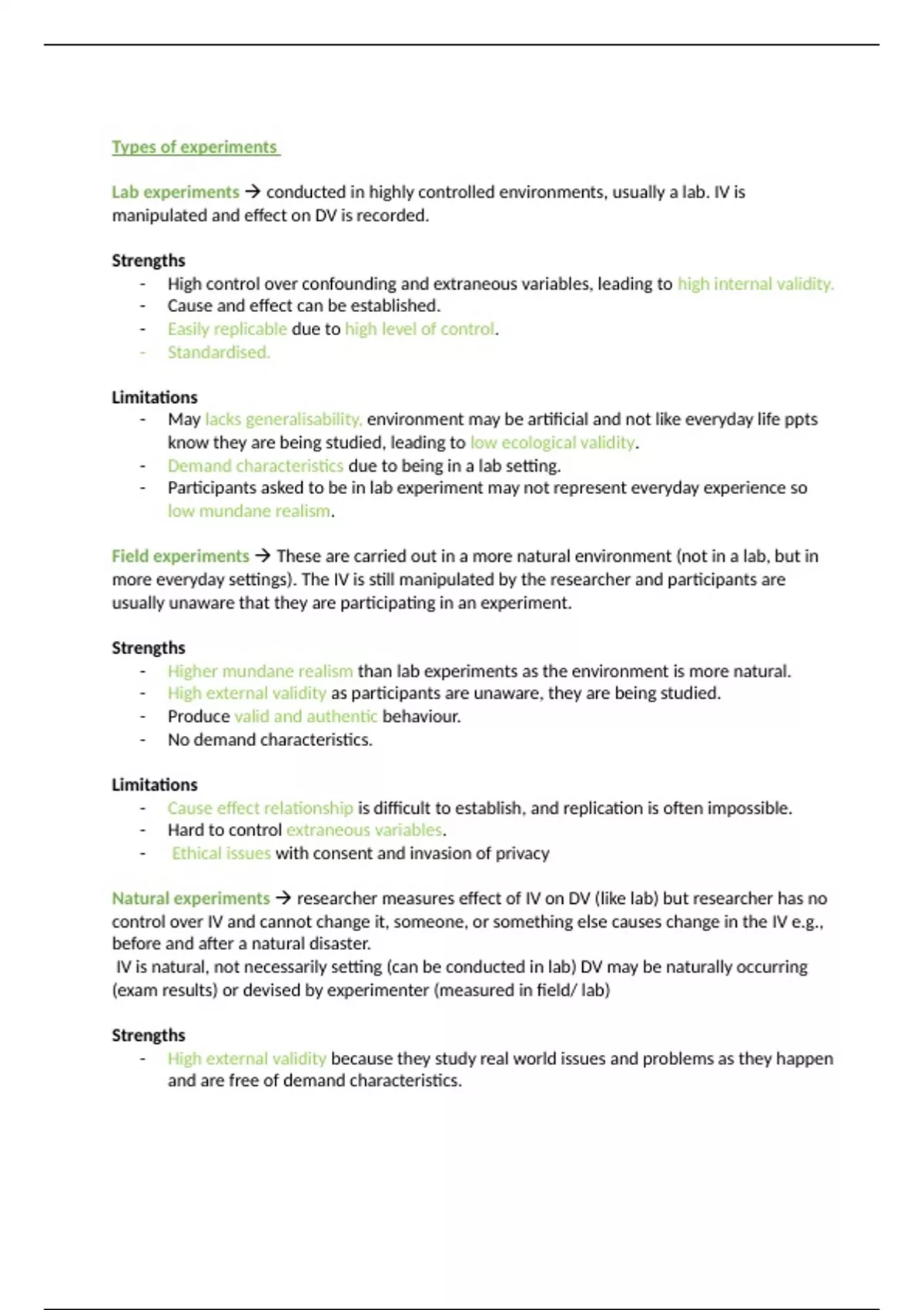 more everyday settings). The IV is still manipulated by the researcher and participants are