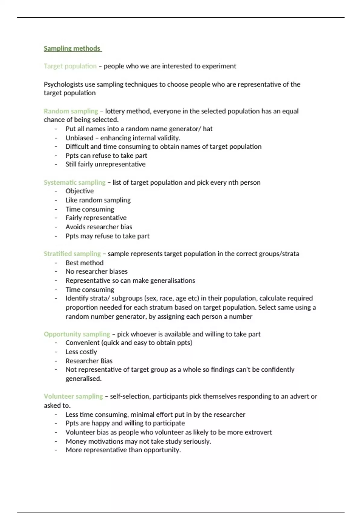 notes on sampling methods in research methods for aqa a level psych