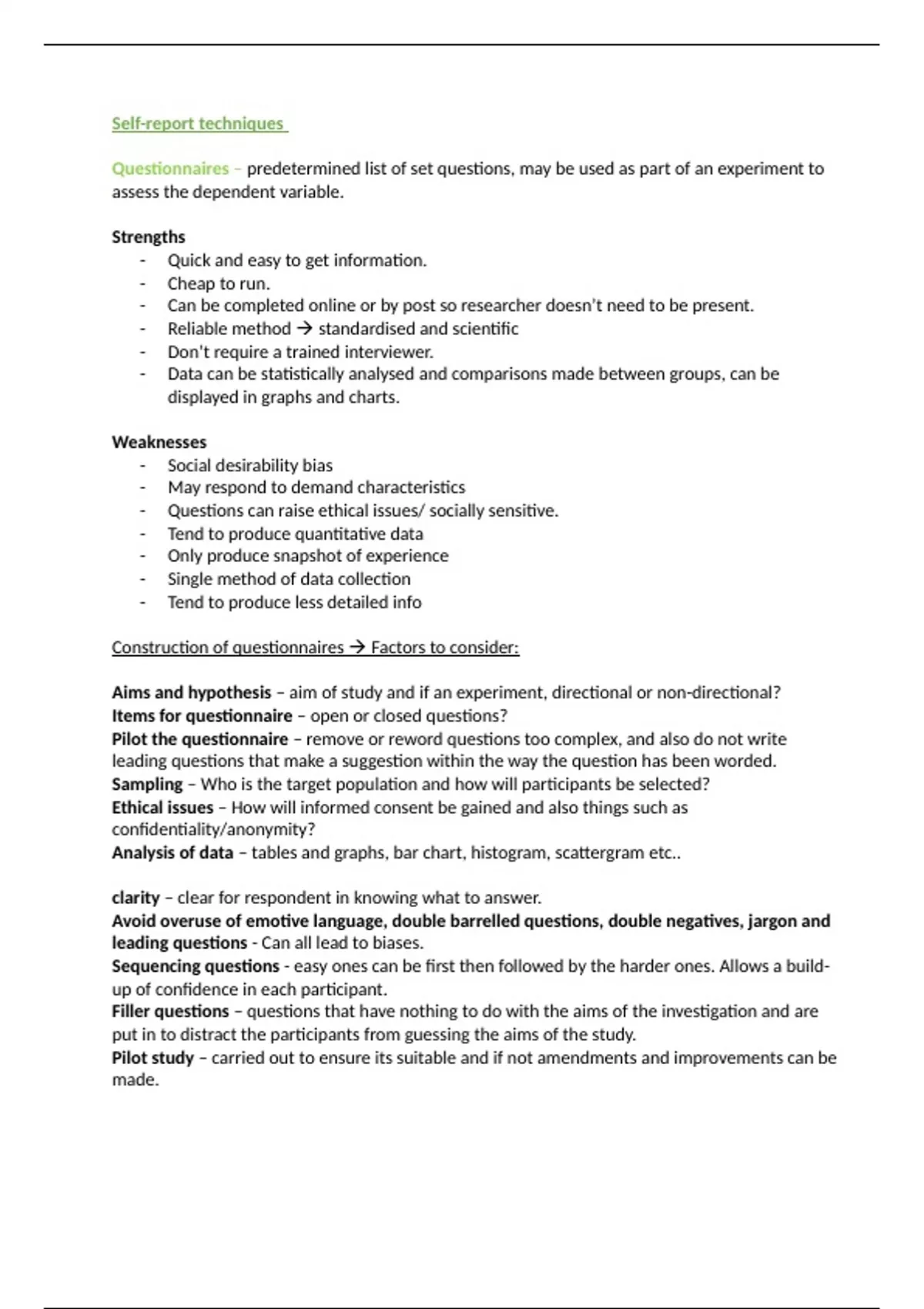 notes on self report techniques within research methods for aqa a level psych