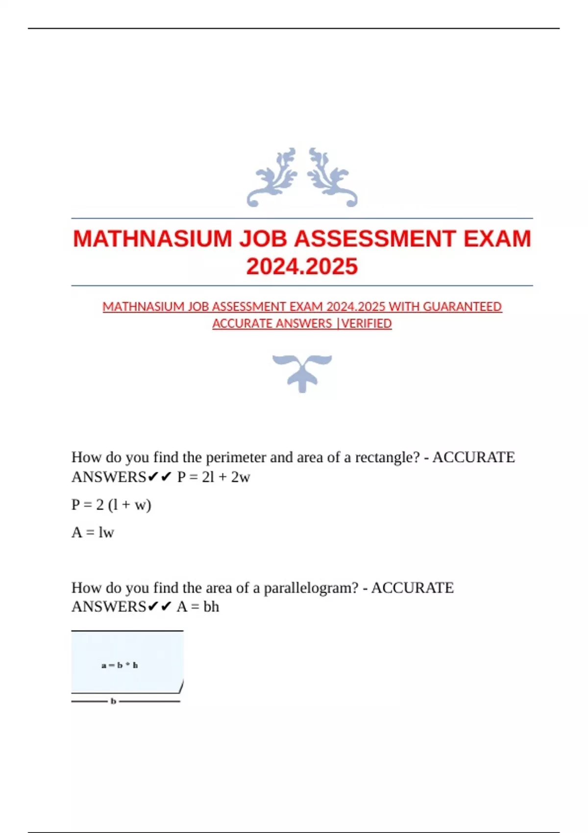 MATHNASIUM JOB ASSESSMENT EXAM 2024.2025 WITH GUARANTEED