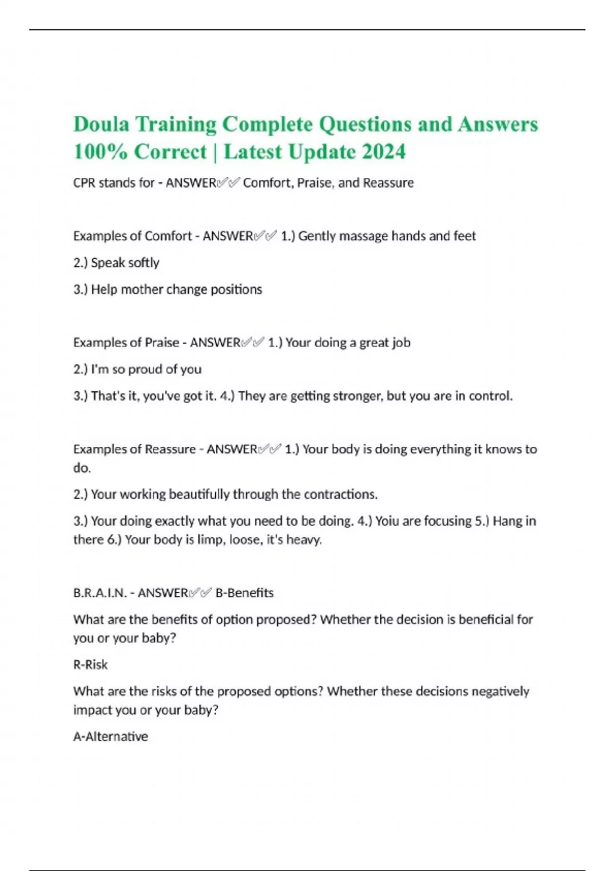 Doula Training Complete Questions and Answers 100% Correct | Latest Update 2024