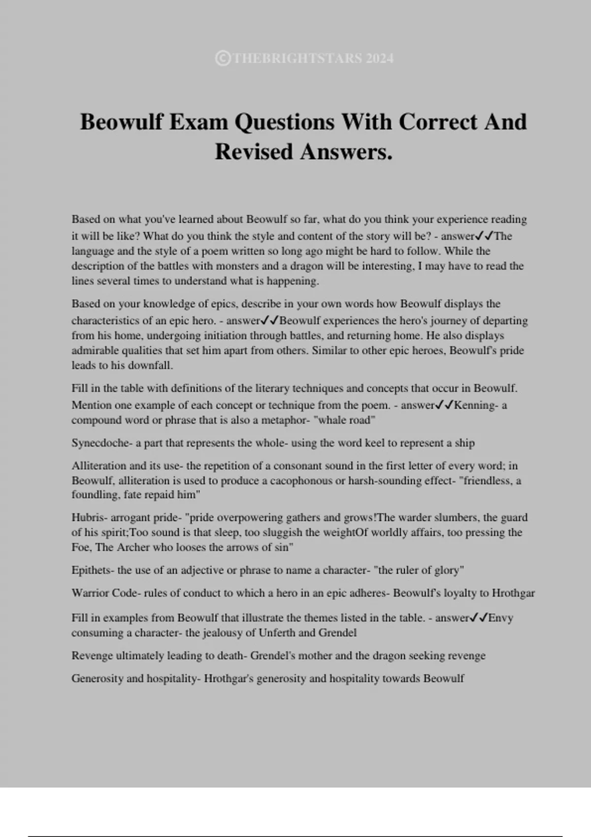 Beowulf Exam Questions With Correct And