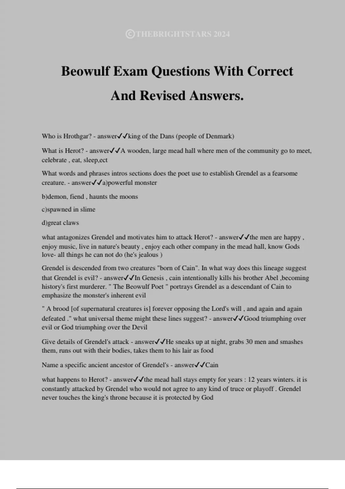 Name a specific ancient ancestor of Grendel's - answer✔✔Cain