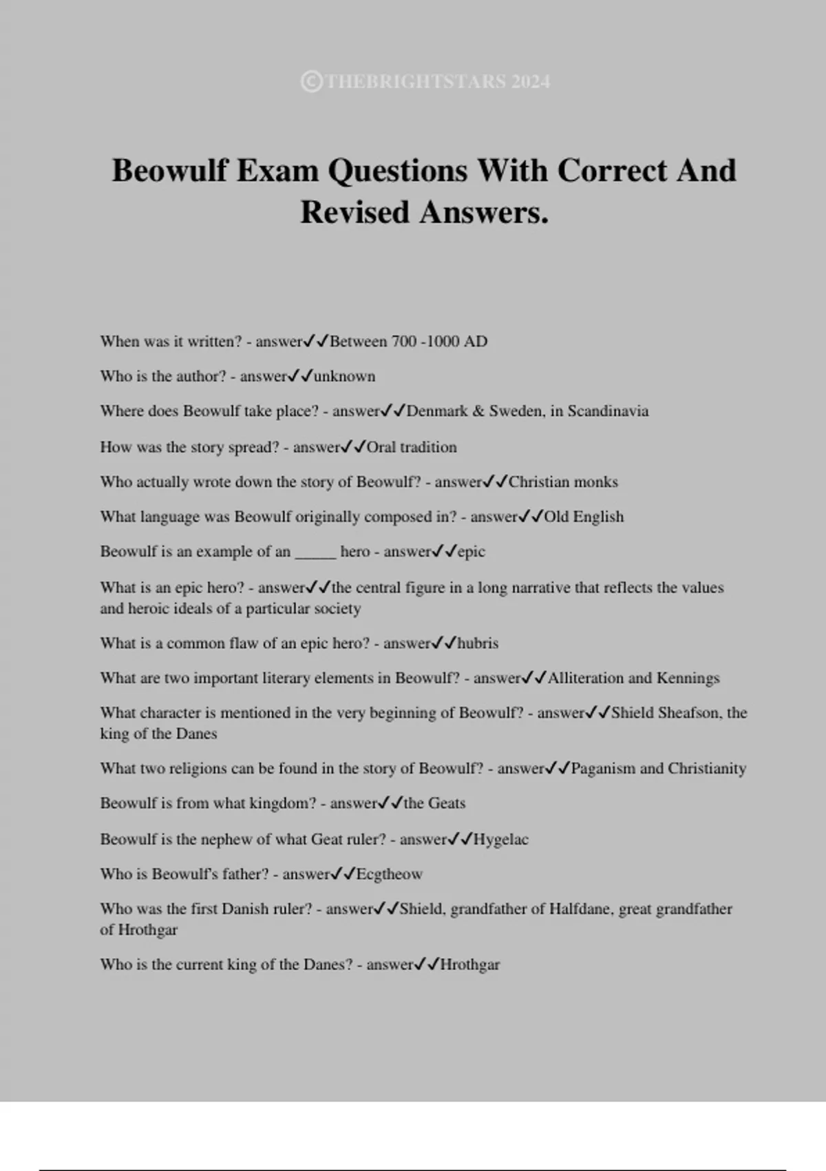 Beowulf Exam Questions With Correct And