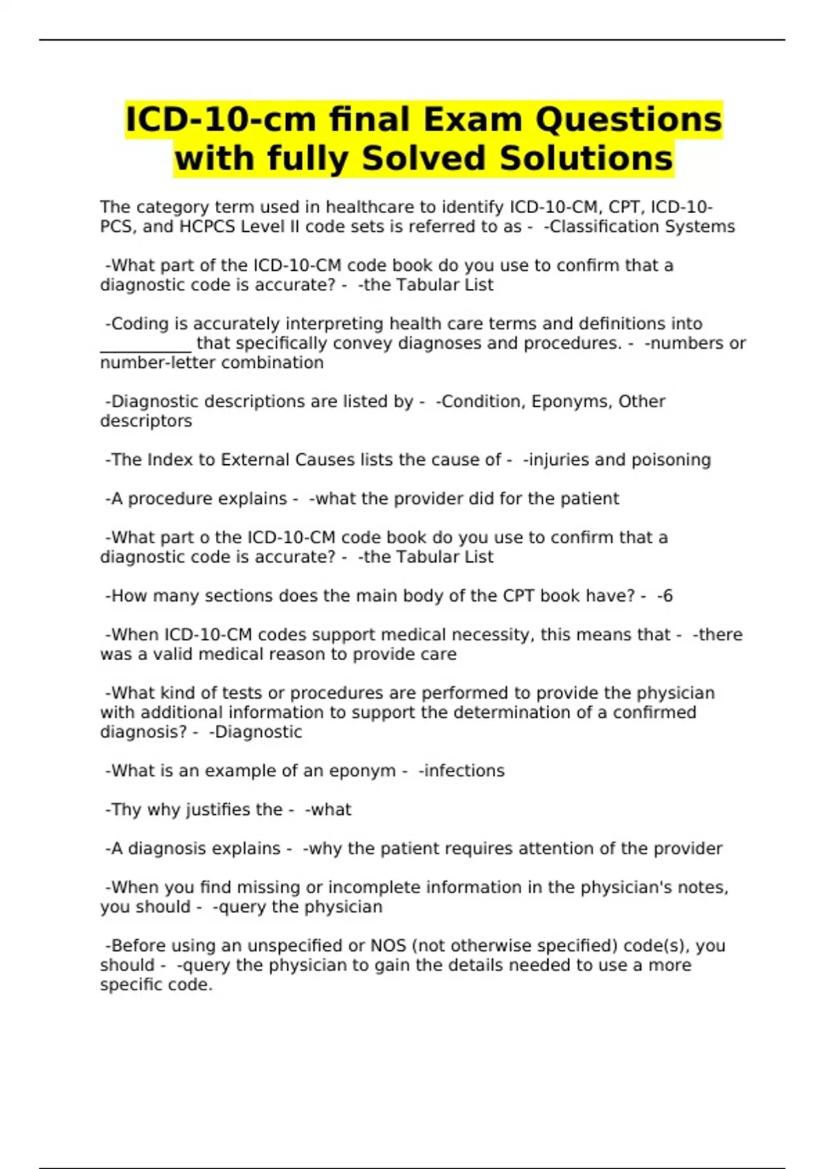 ICD-10-cm final Exam Questions with fully Solved Solutions