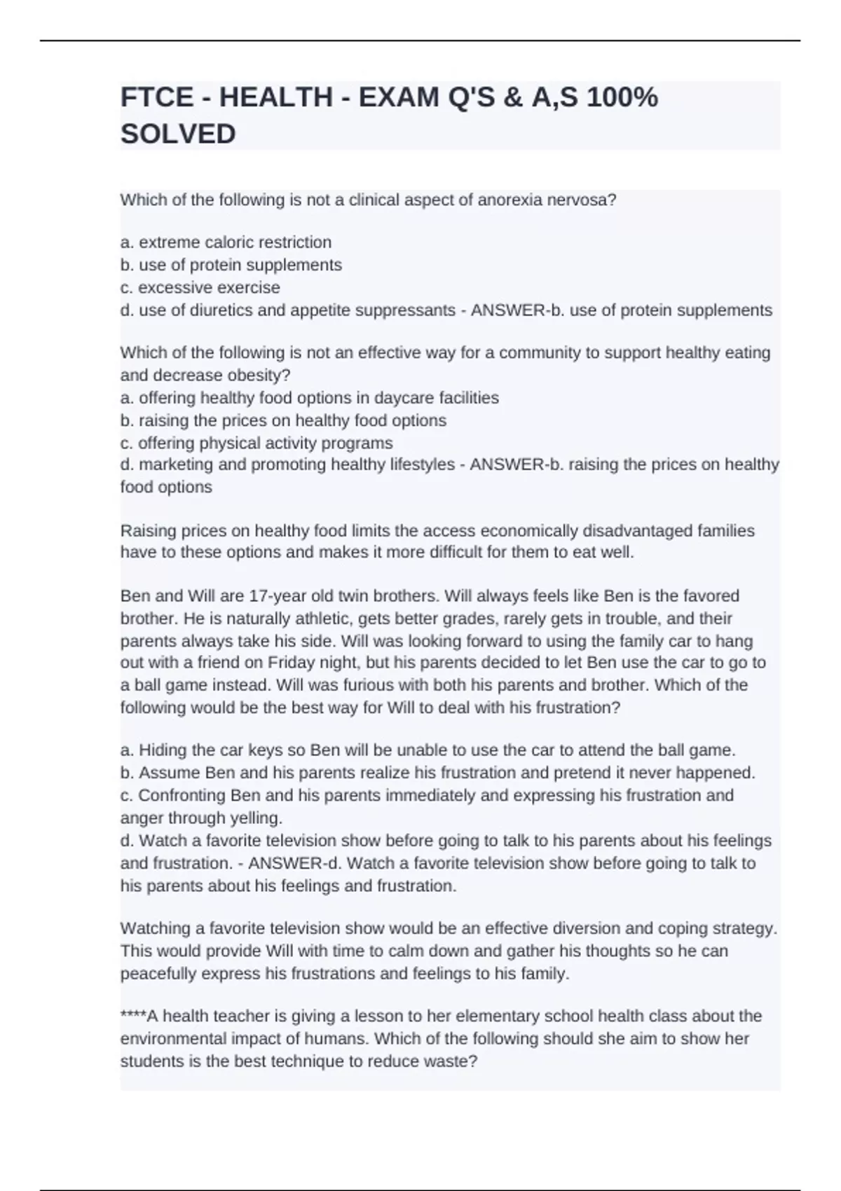 d. marketing and promoting healthy lifestyles - ANSWER-b. raising the prices on healthy