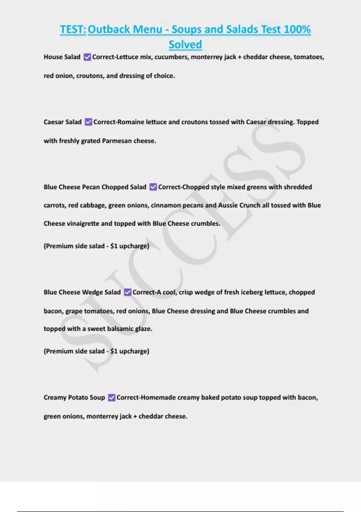 Blue Cheese Wedge Salad Correct-A cool, crisp wedge of fresh iceberg lettuce, chopped