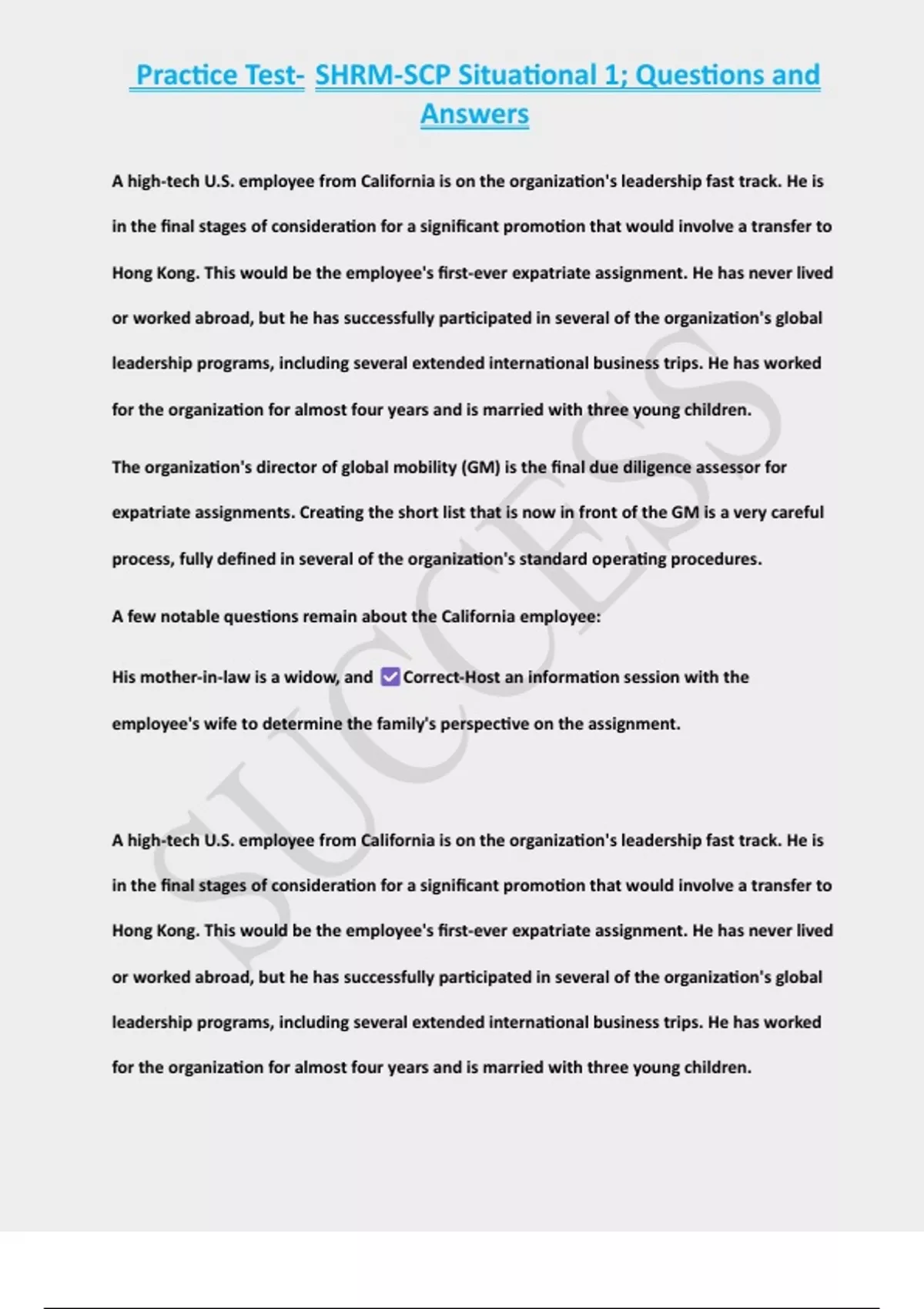 , Practice Test- SHRM-SCP Situational 1; Questions and