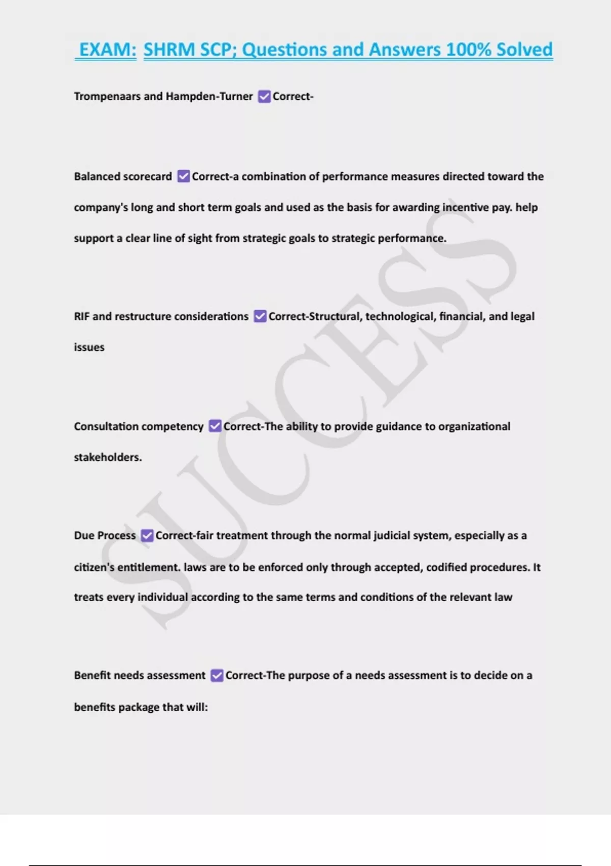 , EXAM: SHRM SCP; Questions and Answers 100% Solved