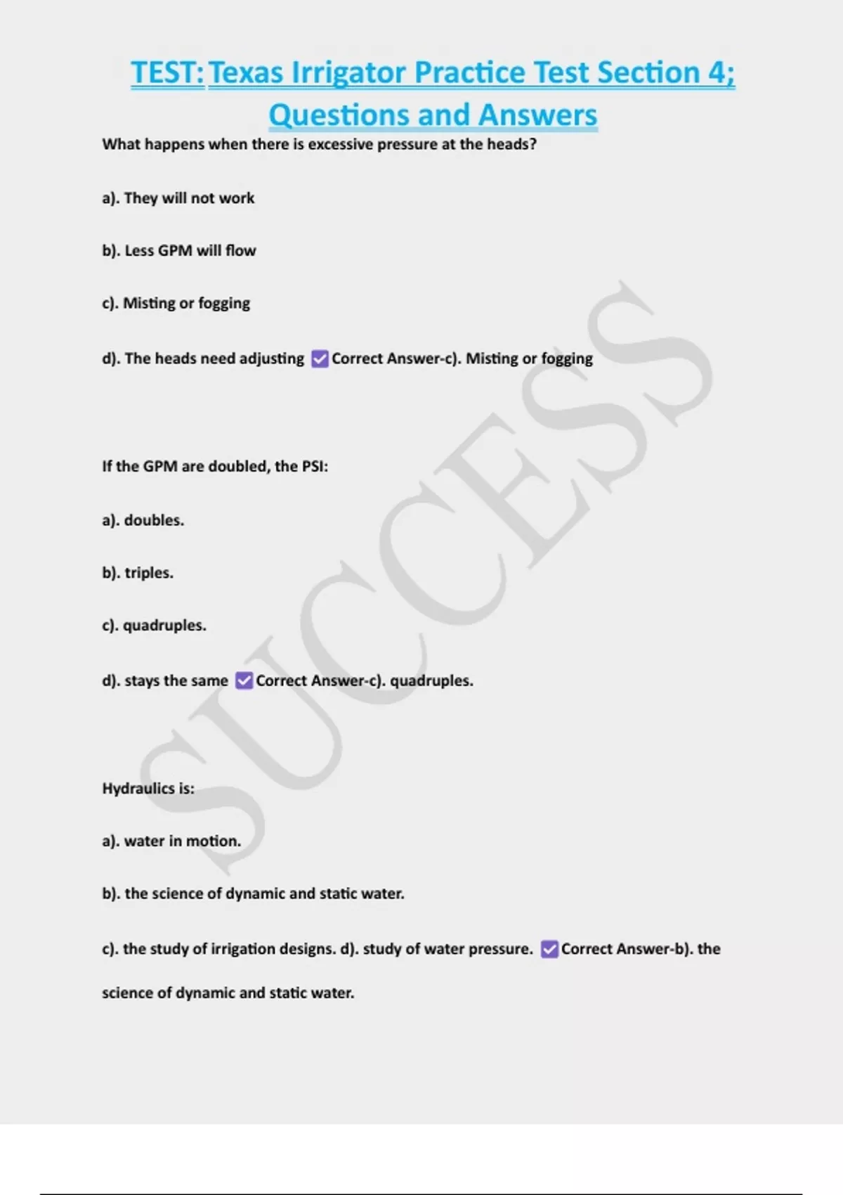 c). the study of irrigation designs. d). study of water pressure. Correct Answer-b). the