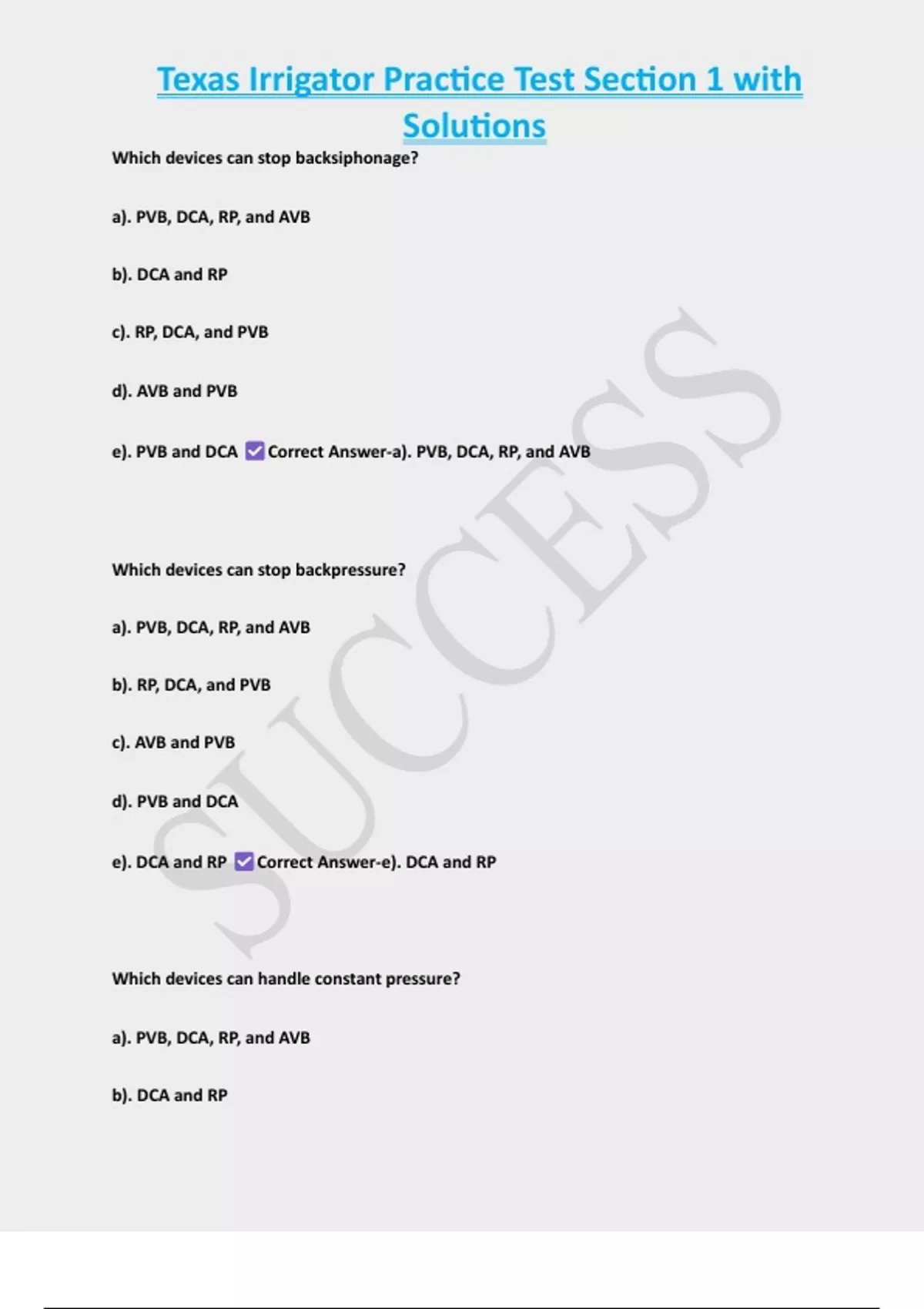 e). All devices (AVB, PVB, DCA, and RP) Correct Answer-e). All devices (AVB, PVB, DCA, and
