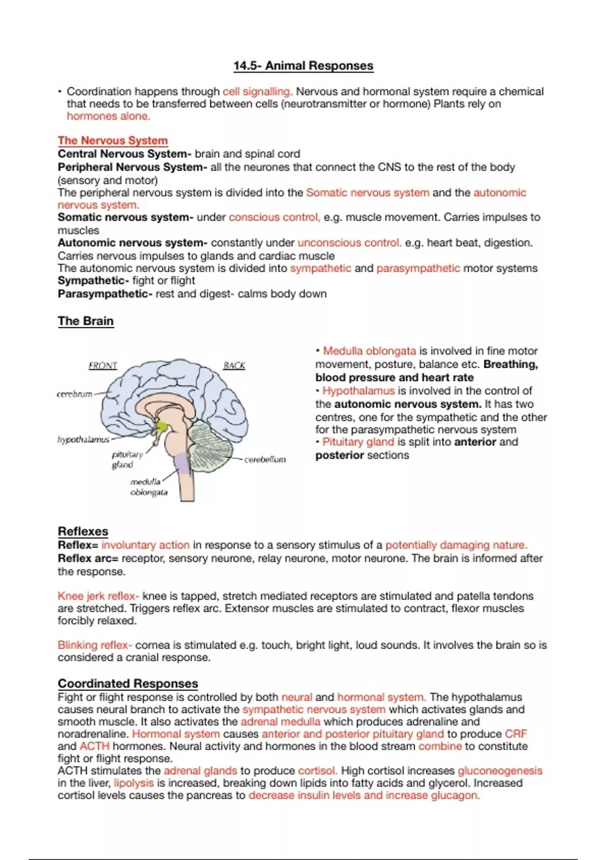 Summary notes for OCR A specification A-level biology, Animal Responses. Helped achieve A* in 2022. Includes basis of nervous system and brain, reflexes and coordinated responses, control of heart rate, structure and function of muscles, neuromuscular junctions, and the sliding filament model.