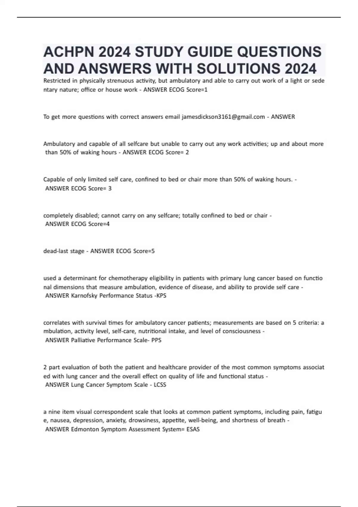 ACHPN 2024 STUDY GUIDE QUESTIONS AND ANSWERS WITH SOLUTIONS 2024