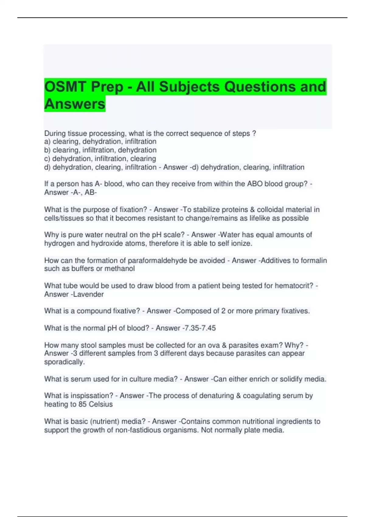 OSMT Prep - All Subjects Questions and Answers