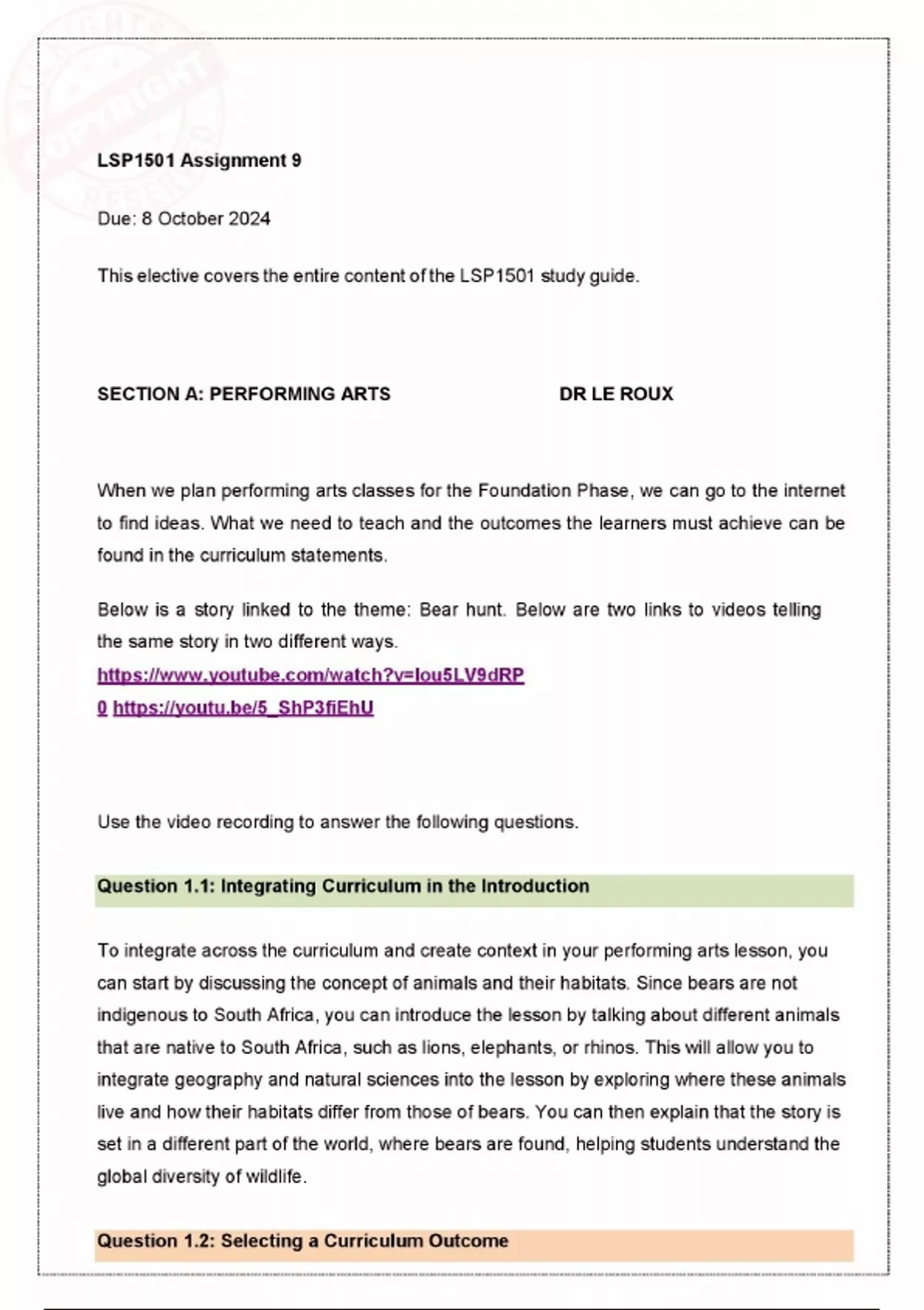 LSP1501 Assignment 9 2024