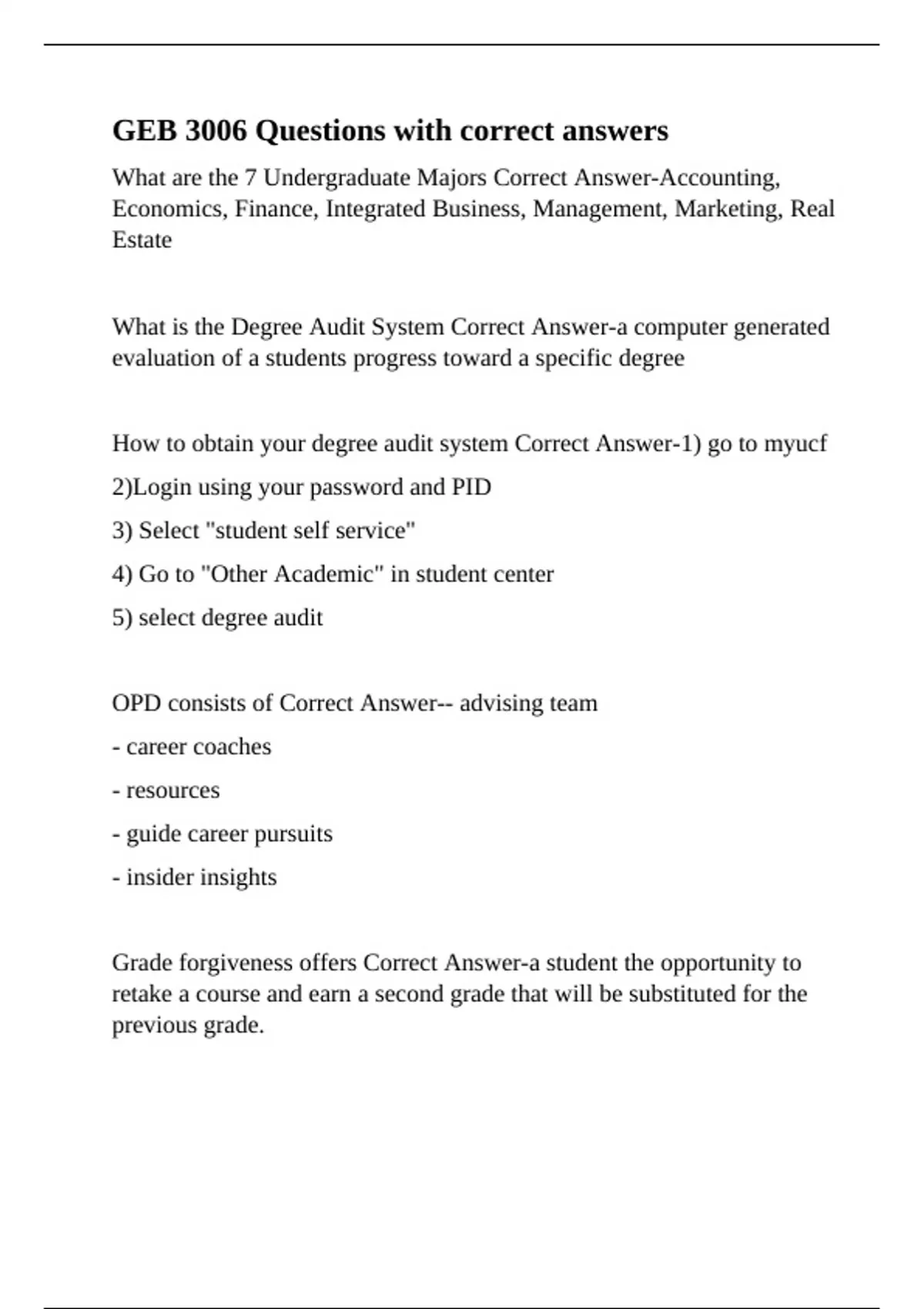 How to obtain your degree audit system Correct Answer-1) go to myucf