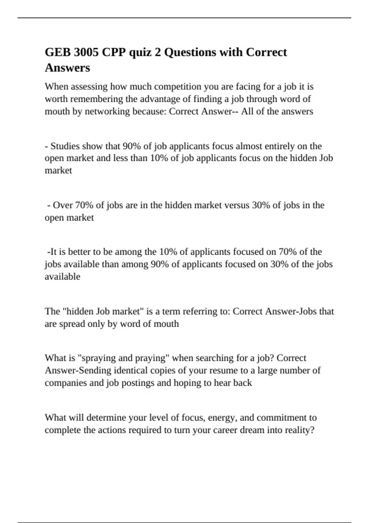 GEB 3005 CPP quiz 2 Questions with Correct Answers.
