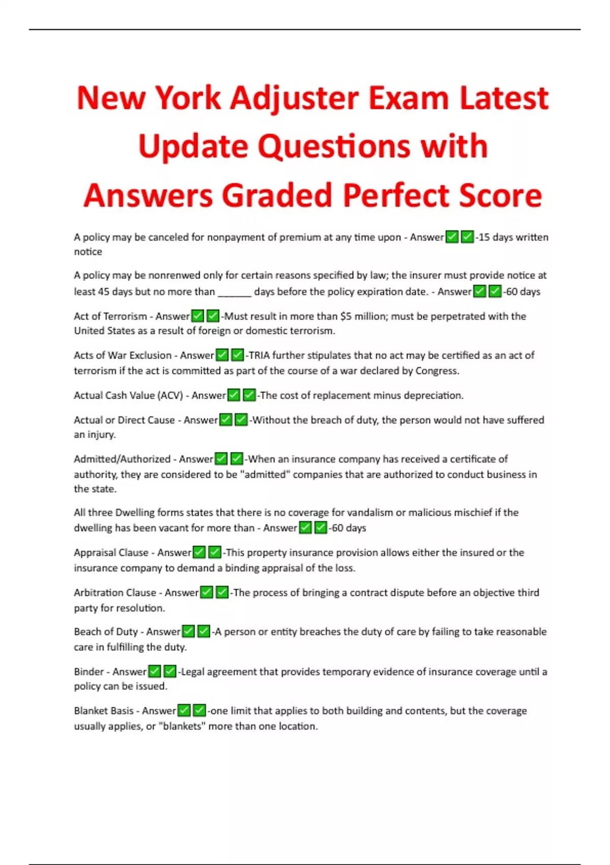 Actual Cash Value (ACV) - Answer -The cost of replacement minus depreciation.