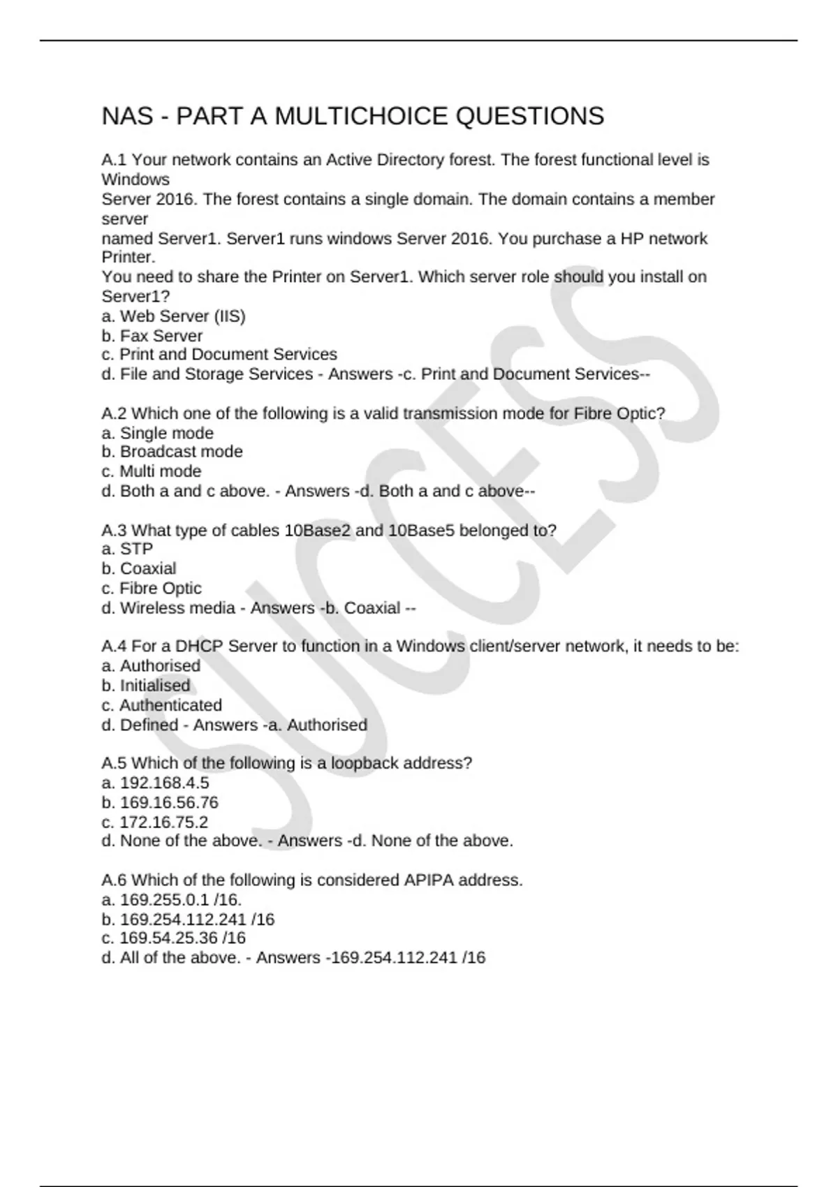 A.4 For a DHCP Server to function in a Windows client/server network, it needs to be: