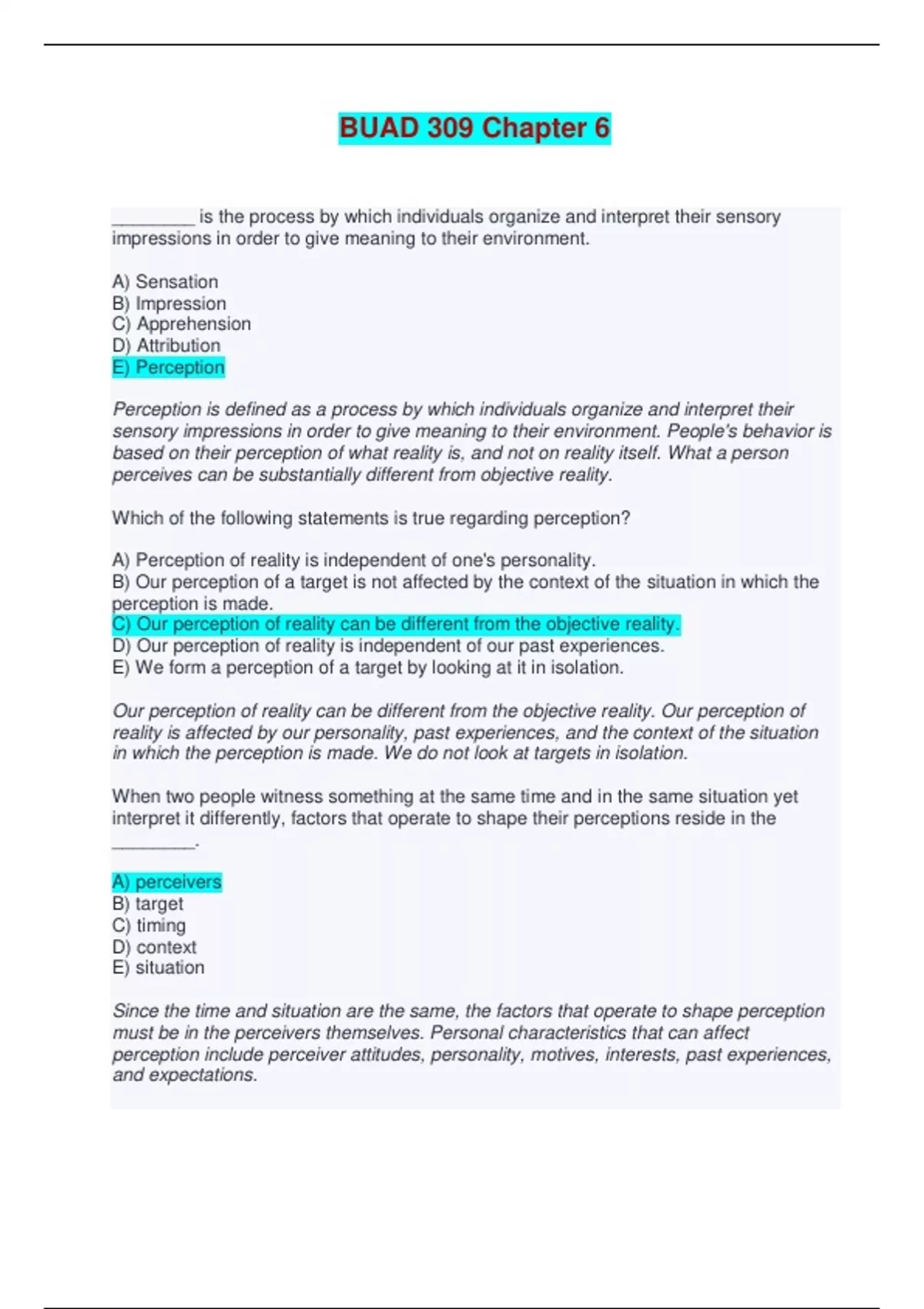 sensory impressions in order to give meaning to their environment. People's behavior is