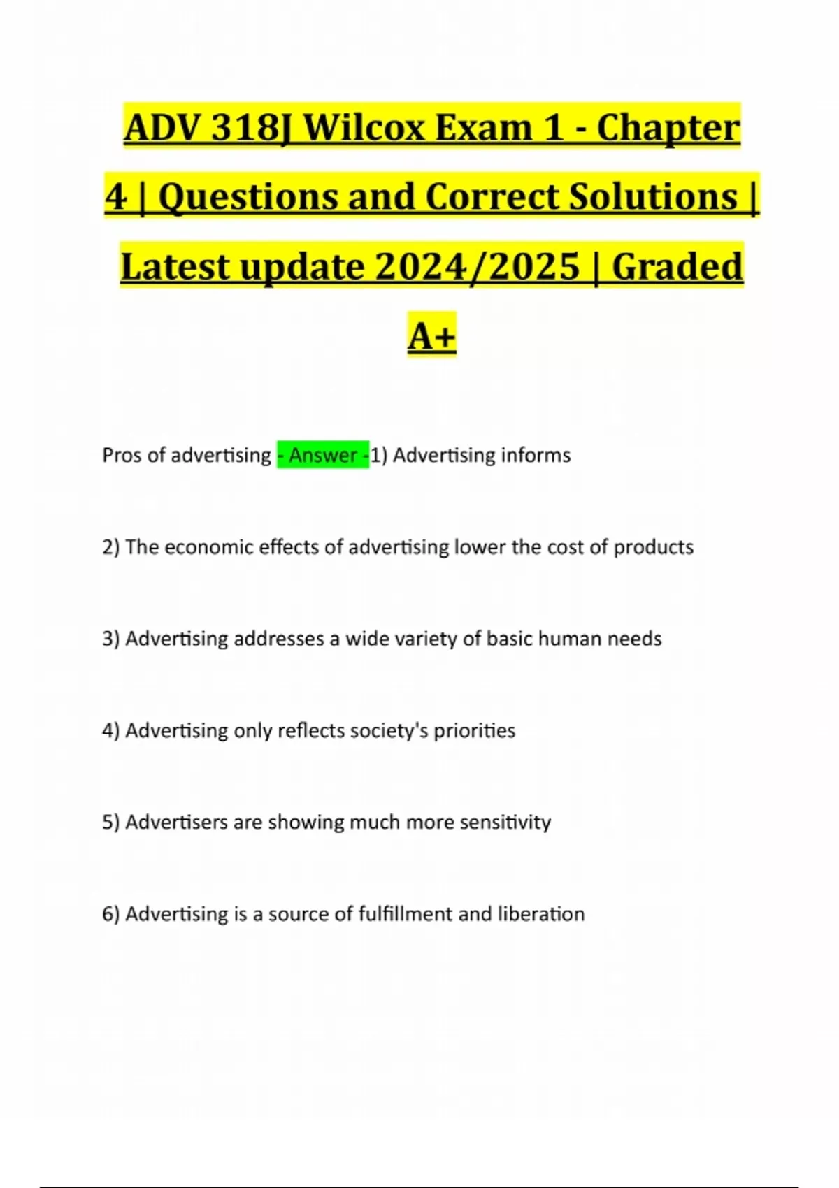 ADV 318J Wilcox Exam 1 - Chapter 4 | Questions and Correct Solutions | Latest update 2024/2025 | Graded A+