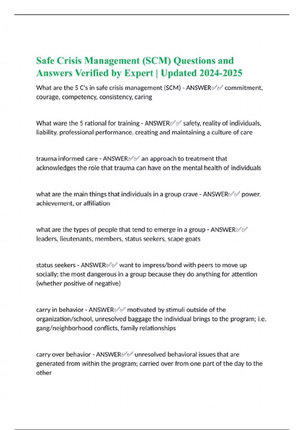 Safe Crisis Management (SCM) Questions and Answers Verified by Expert | Updated