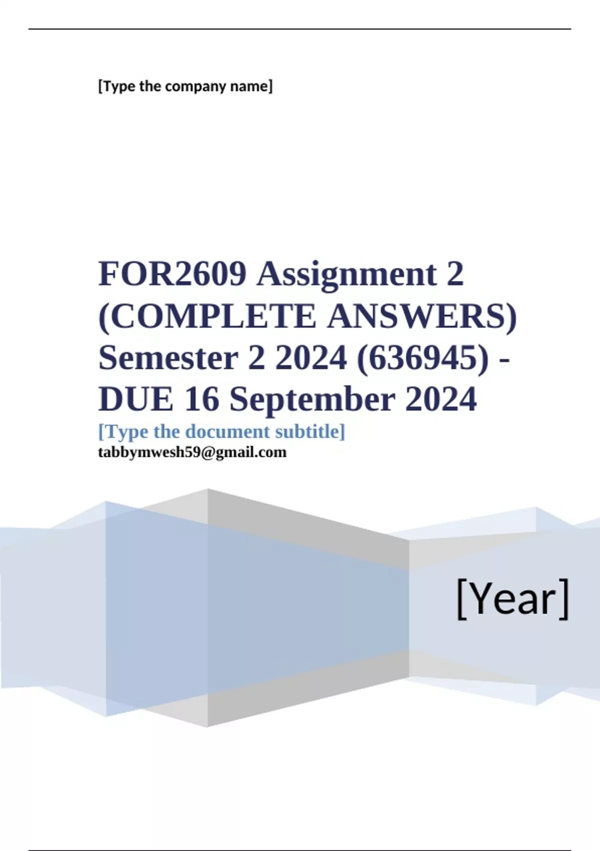 FOR2609 Assignment 2 (COMPLETE ANSWERS) Semester 2 2024 (636945) - DUE 16 September 2024 ; 100% TRUSTED Complete, trusted solutions and explanations.