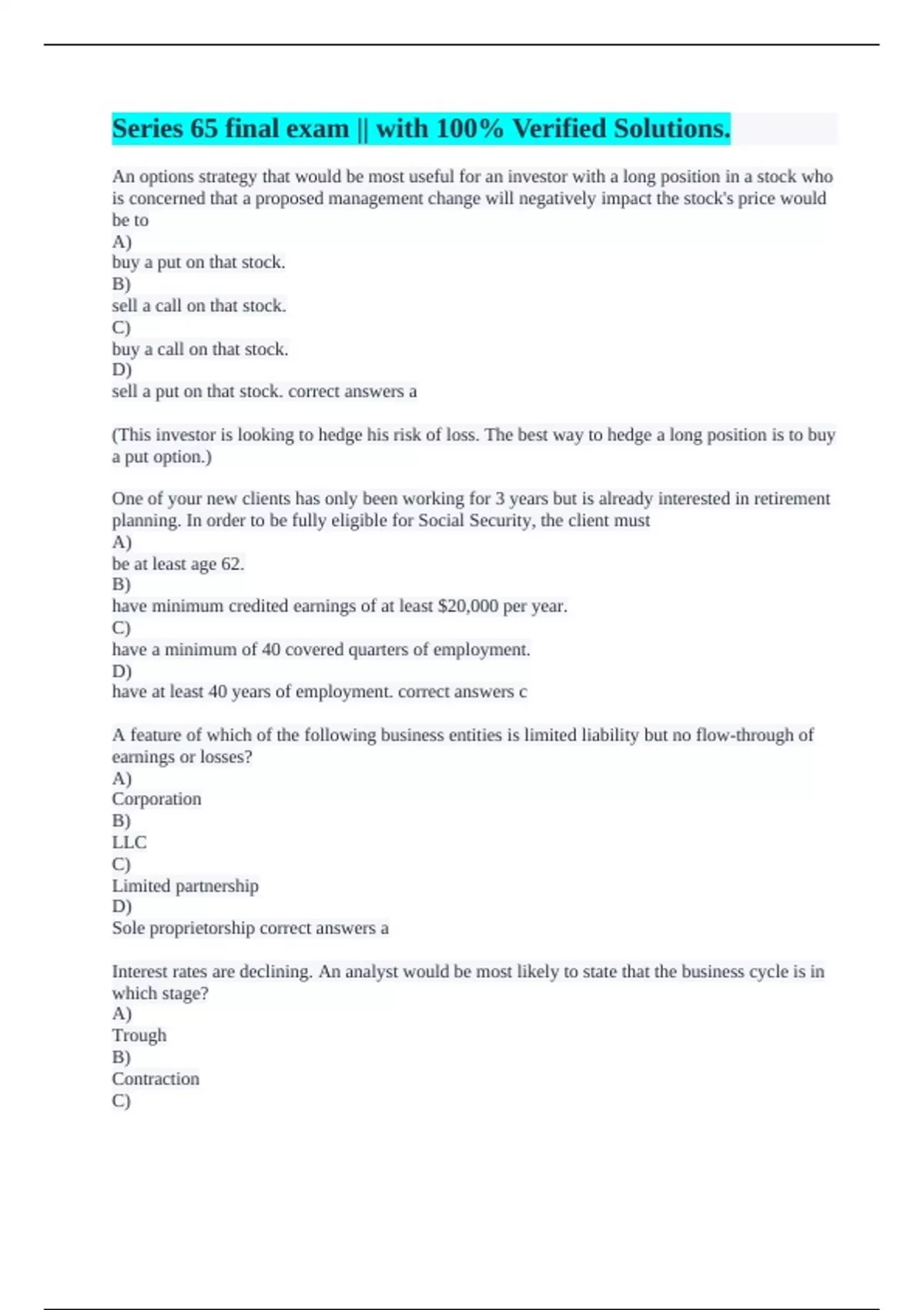Options correct answers A