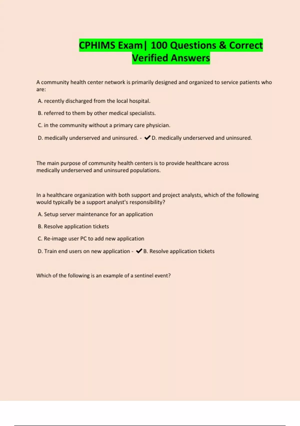 D. medically underserved and uninsured. - ✔D. medically underserved and uninsured.