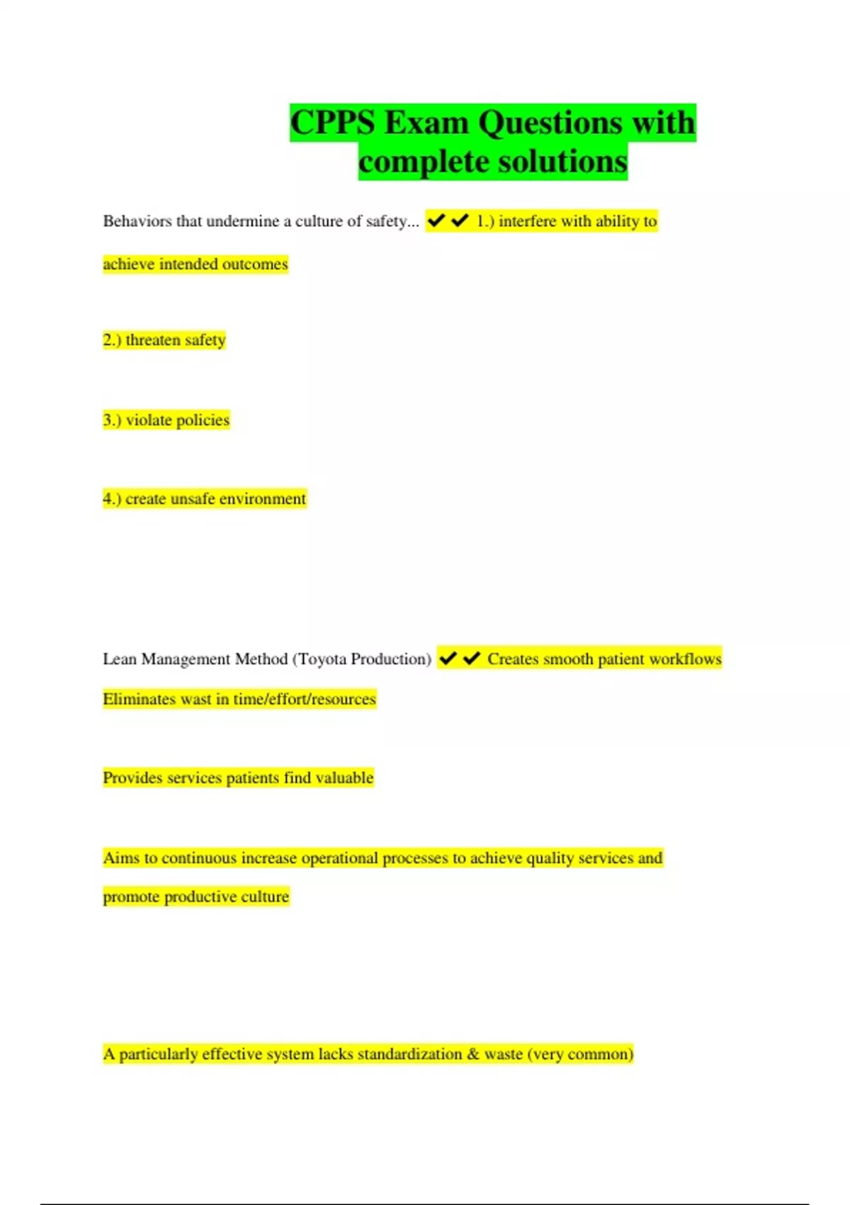 CPPS Exam Questions with