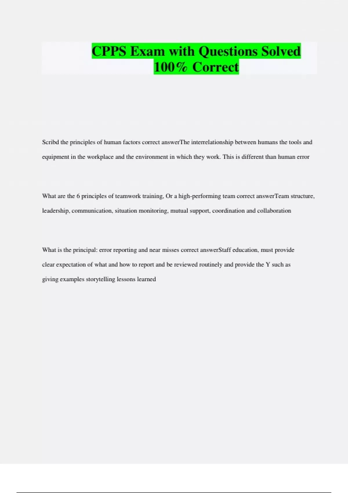 CPPS Exam with Questions Solved