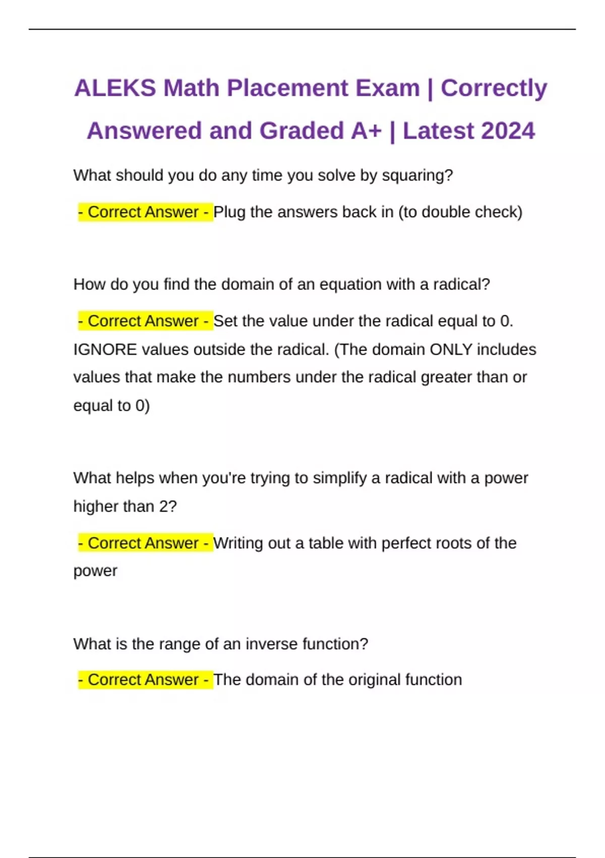 ALEKS Math Placement Exam | Correctly