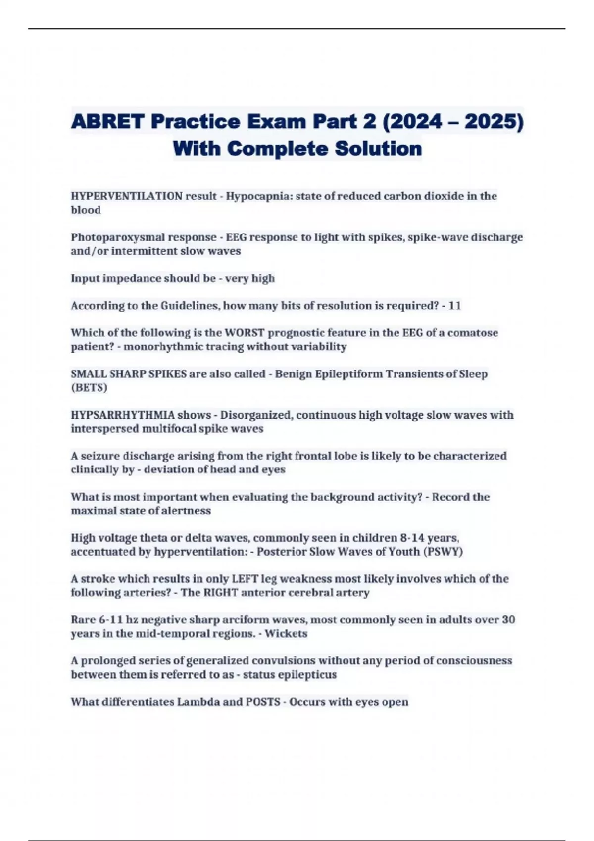 ABRET Practice Exam Part 2 (2024 – 2025) With Complete Solution