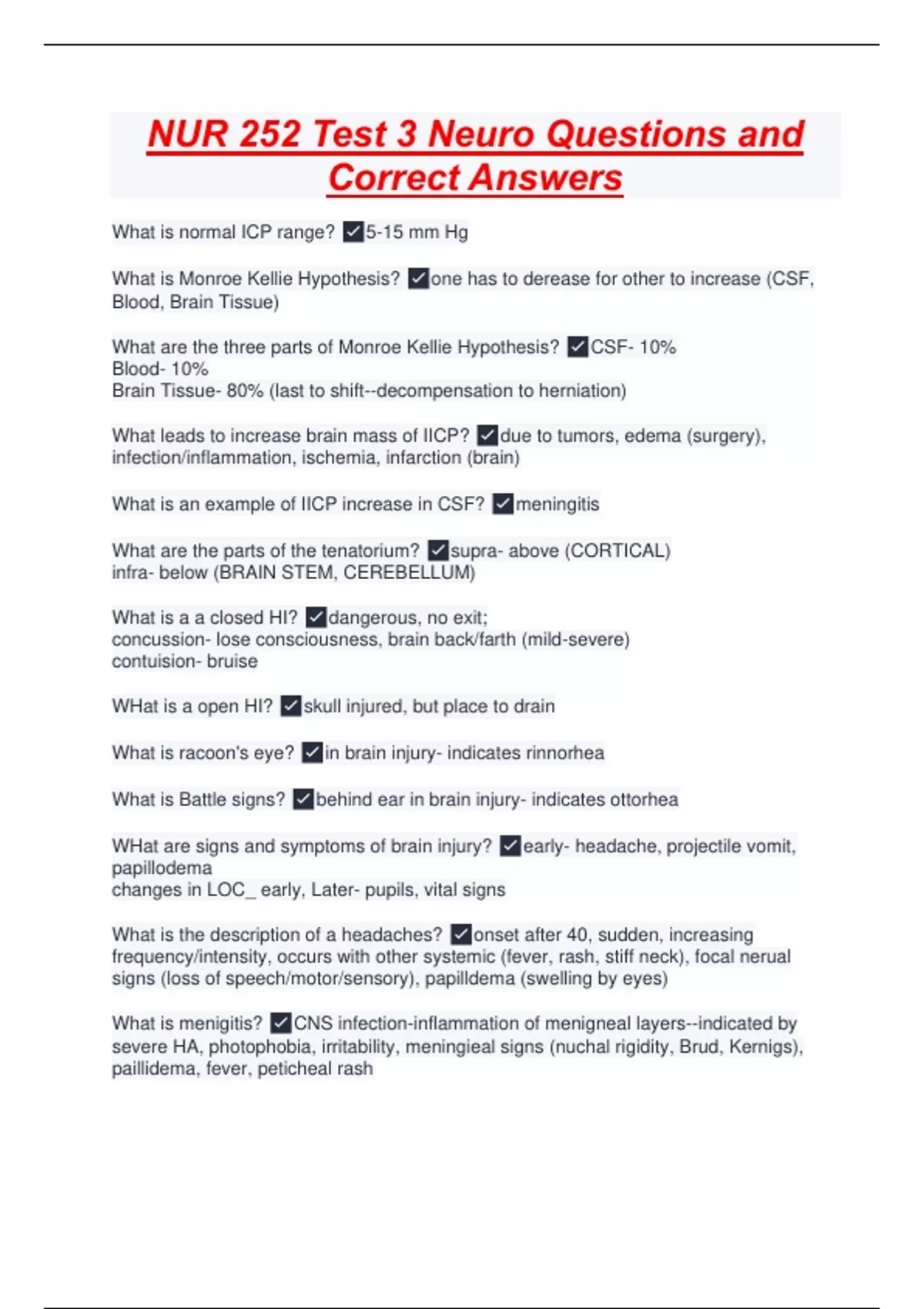 What are the three parts of Monroe Kellie Hypothesis? ✅CSF- 10%