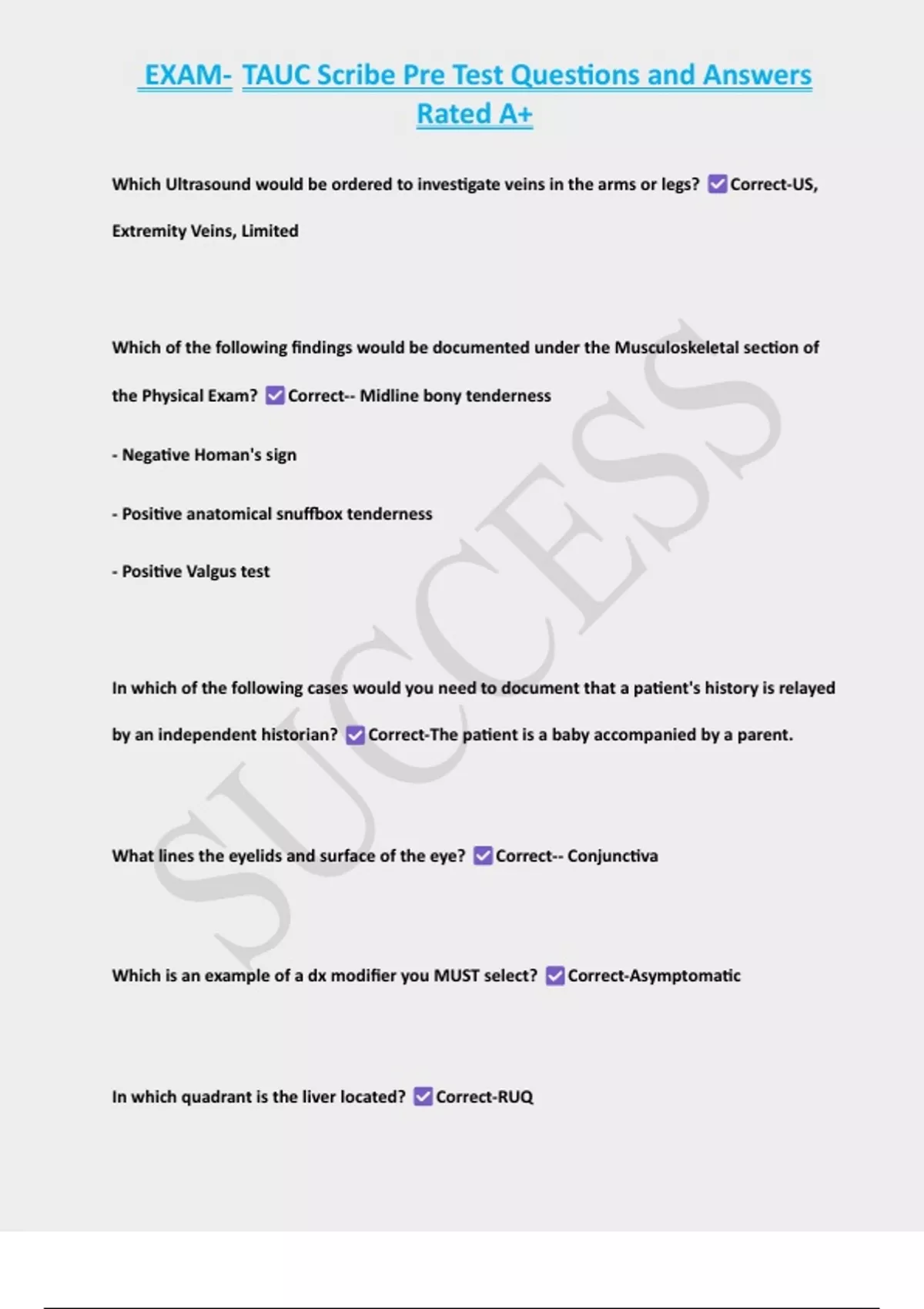 , EXAM- TAUC Scribe Pre Test Questions and Answers