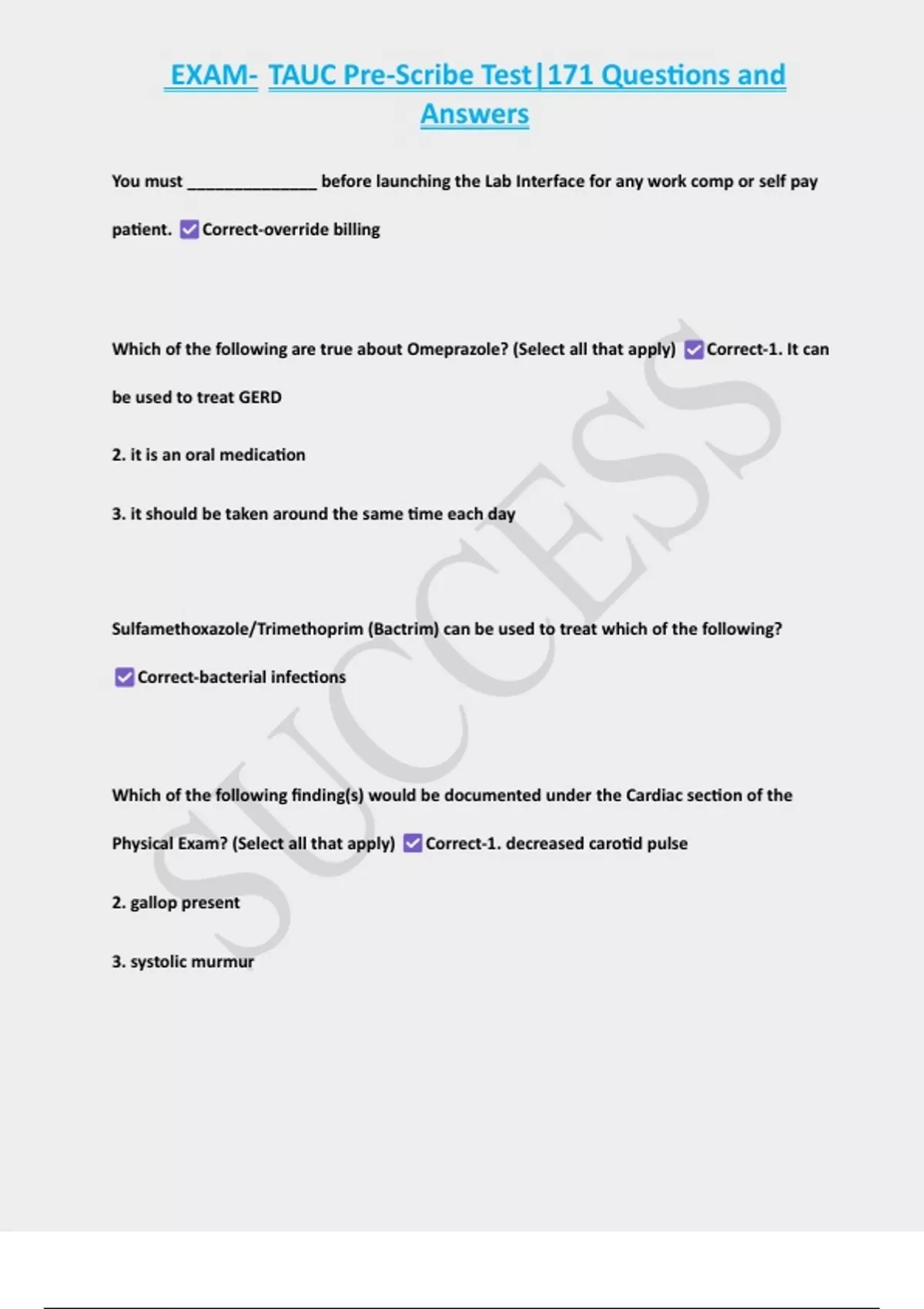 , EXAM- TAUC Pre-Scribe Test|171 Questions and