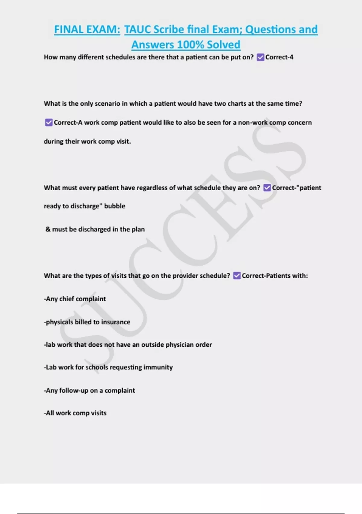, FINAL EXAM: TAUC Scribe final Exam; Questions and