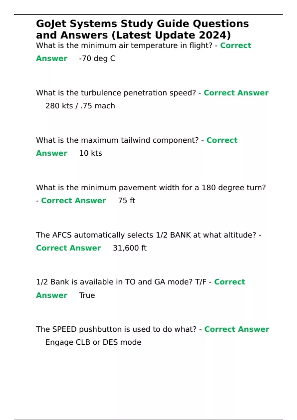 ,GoJet Systems Study Guide Questions