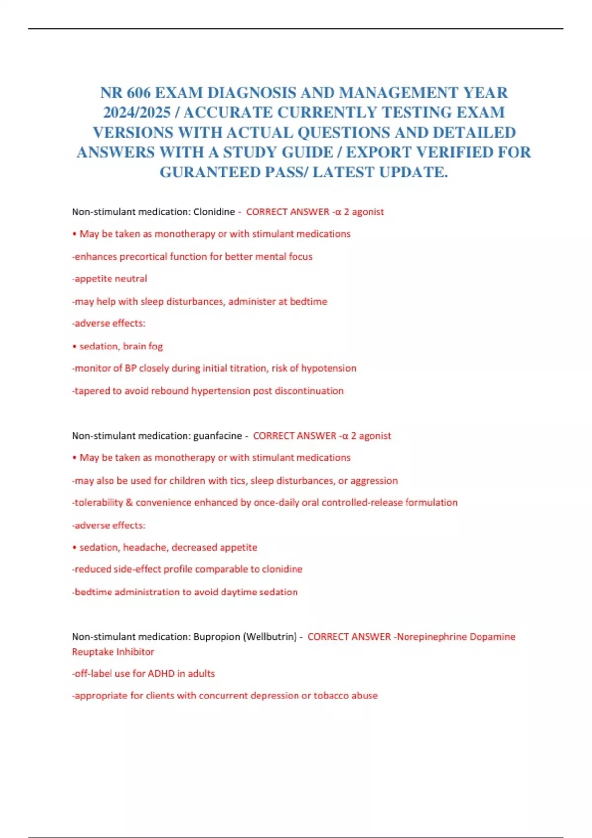 NR 606 EXAM DIAGNOSIS AND MANAGEMENT YEAR 2024/2025 / ACCURATE CURRENTLY TESTING EXAM VERSIONS WITH ACTUAL QUESTIONS AND DETAILED ANSWERS WITH A STUDY GUIDE / EXPORT VERIFIED FOR GURANTEED PASS/ LATEST UPDATE.