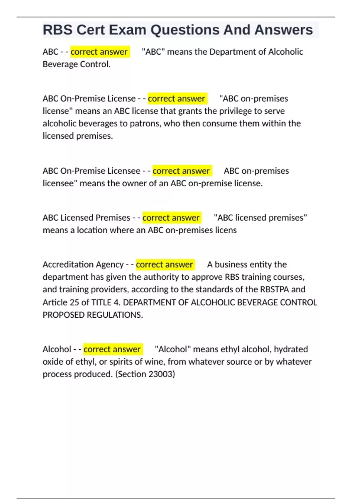 Alcohol Server Certification Exam - - correct answer ✅An exam given to