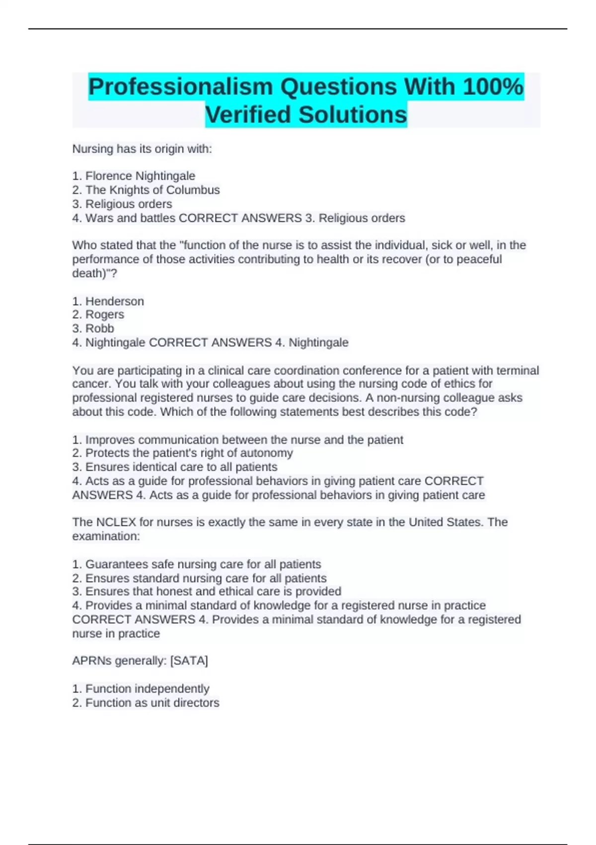 CORRECT ANSWERS 4. Provides a minimal standard of knowledge for a registered