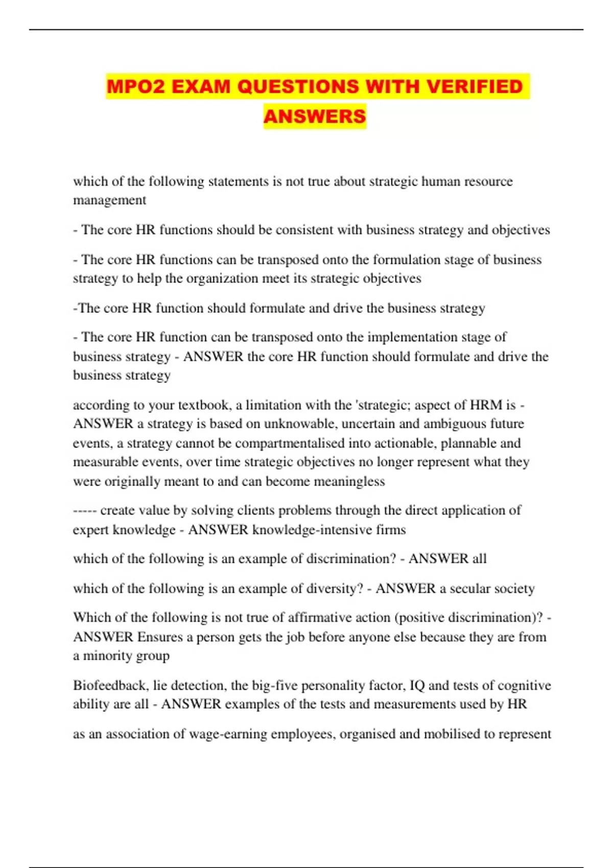 MPO2 EXAM QUESTIONS WITH VERIFIED