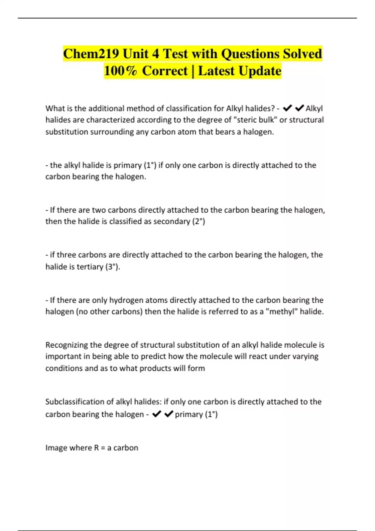 Chem219 Unit 4 Test with Questions Solved 100% Correct | Latest Update