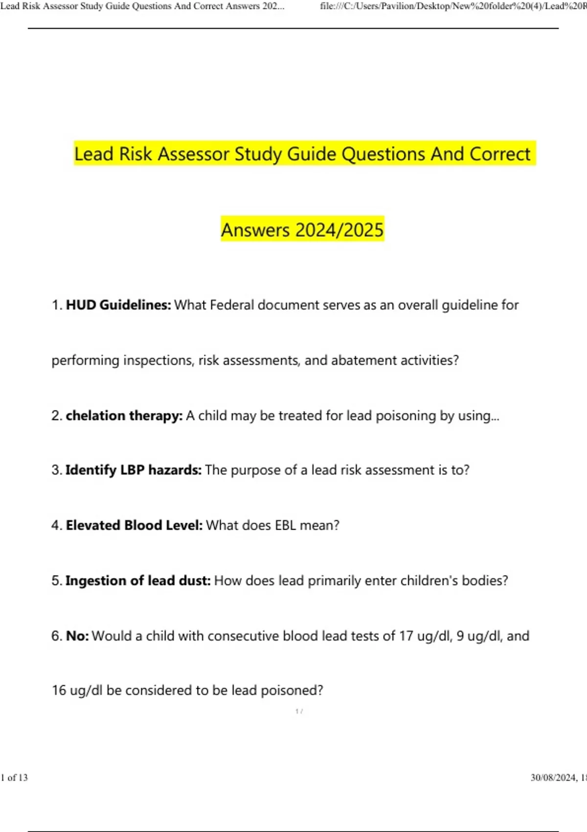 ,Lead Risk Assessor Study Guide Questions And Correct Answers 202... file:///C:/Users/Pavilion/Desktop/New%20folder%20(4)/Lead%20R